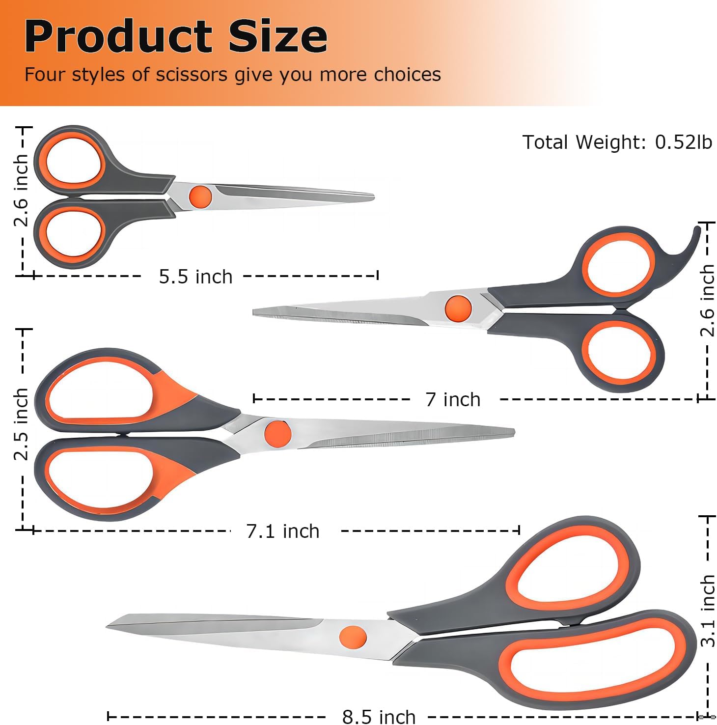 - Ultra-Portable 4-Pack Scissors for Anywhere Use - Compact and lightweight, this scissors set fits effortlessly in desk drawers, backpacks, or travel kits—ideal for office, classroom, or on-the-go crafting.