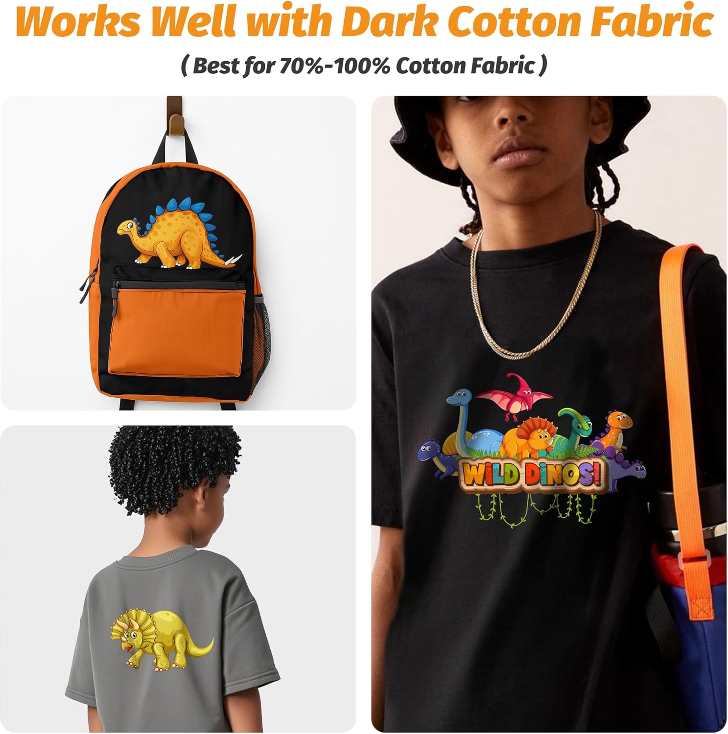 - Professional Quality: Specifically designed for dark cotton fabric (best for 70-100% cotton fabric), this printable heat transfer paper ensures vibrant and bright colors that pop without fading, cracking, or peeling, even after repeated washes. Ideal to DIY T shirts, hoodies, totes, canvas bags, aprons, masks, pillow cases, cushion covers, tablecloths, flags and banners, etc. Each pack of this dark transfer paper comes with 40 premium transfer sheets for T shirts of 8.5x11’’, 4 sheets heat protective paper (11x17’’) and full instructions