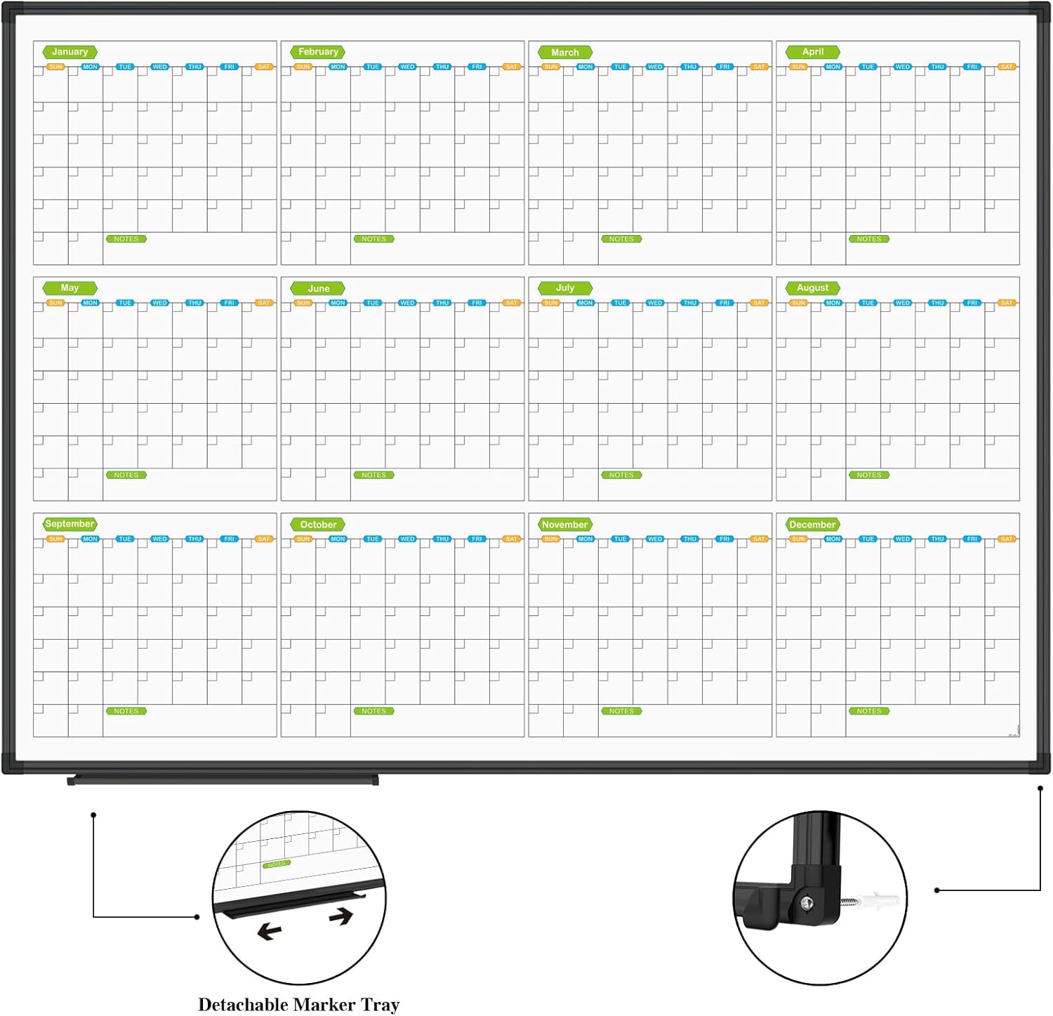 - MAGNETIC CALENDAR WHITEBOARD SURFACE: 12 months design make your plan look clearer and record things in these twelve months in more detail, surface can be used to mark dates meetings and appointments, Organize weekly plan, never forget important calendar, Strong magnetic performance, easy to put notes, pages, documents, photos, graphs and cards on. Creating more working, learning and playing experience.
