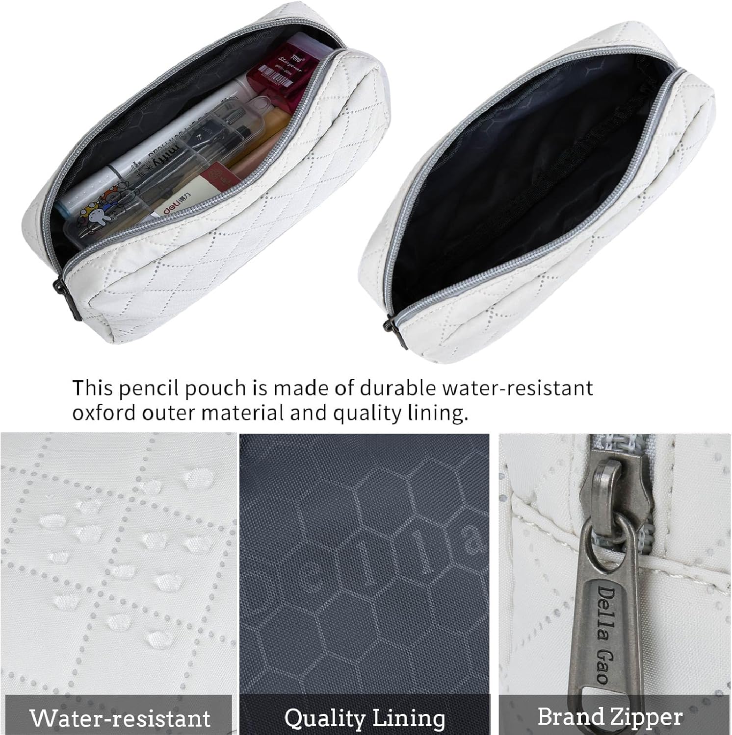 - Quality Material & Accessories:The black pencil case is made of durable lightweight nylon material, it's water-resisitant, tear-resisitant and washable.But you cannot put it in water, because the zipper are not waterproof