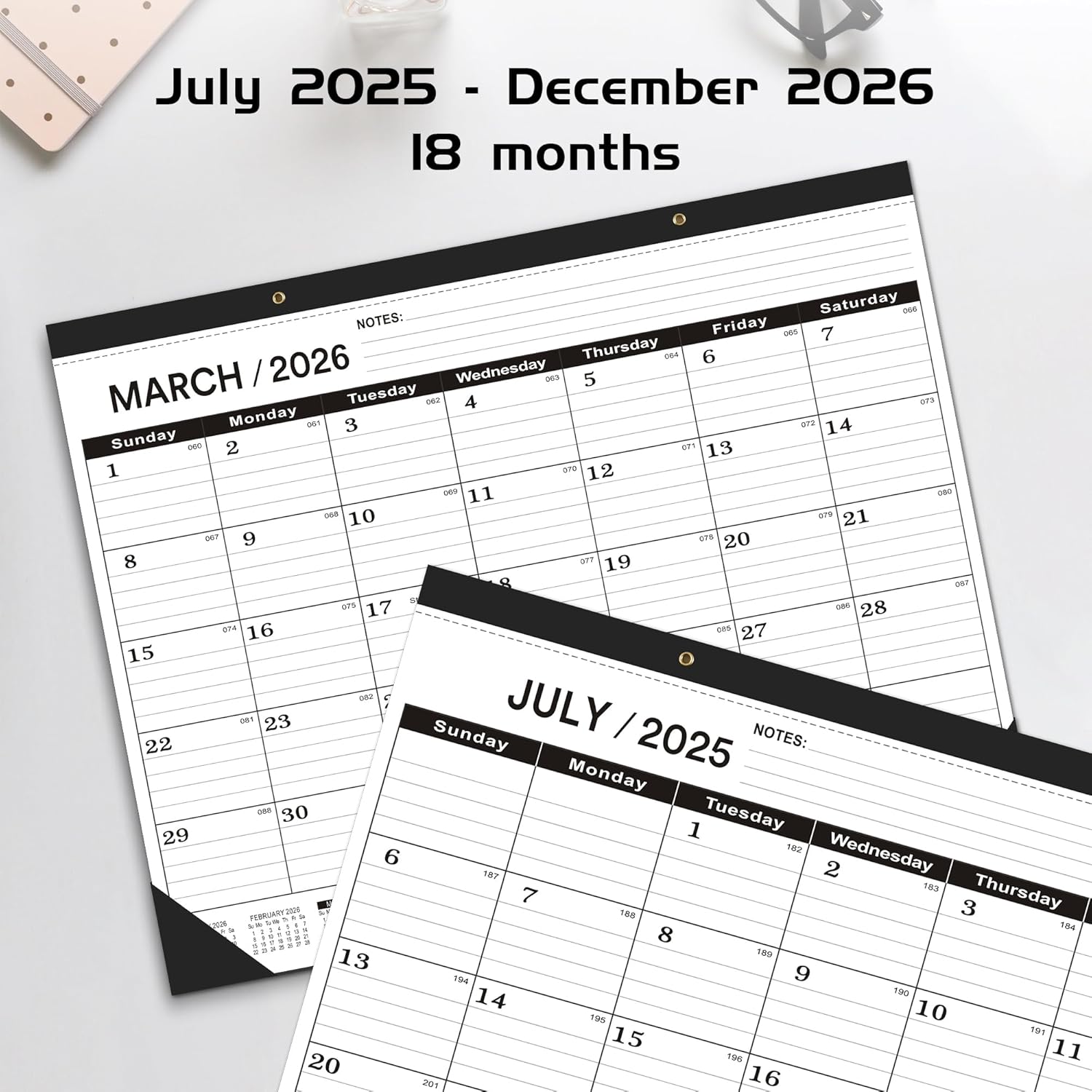- đ˛ăExtra Large CalendarăThe desk calendar 2025-2026 runs from July 2025 through December 2026.Featuring 18 months for long planning,the desk calendar 2025-2026 overall size is 22" x 17" and each block is 3.1" x 2.3" wall calendar 2025 for daily use.Monthly desk calendar 2025-2026 with large grid,big print is perfect for group scheduling or seniors.