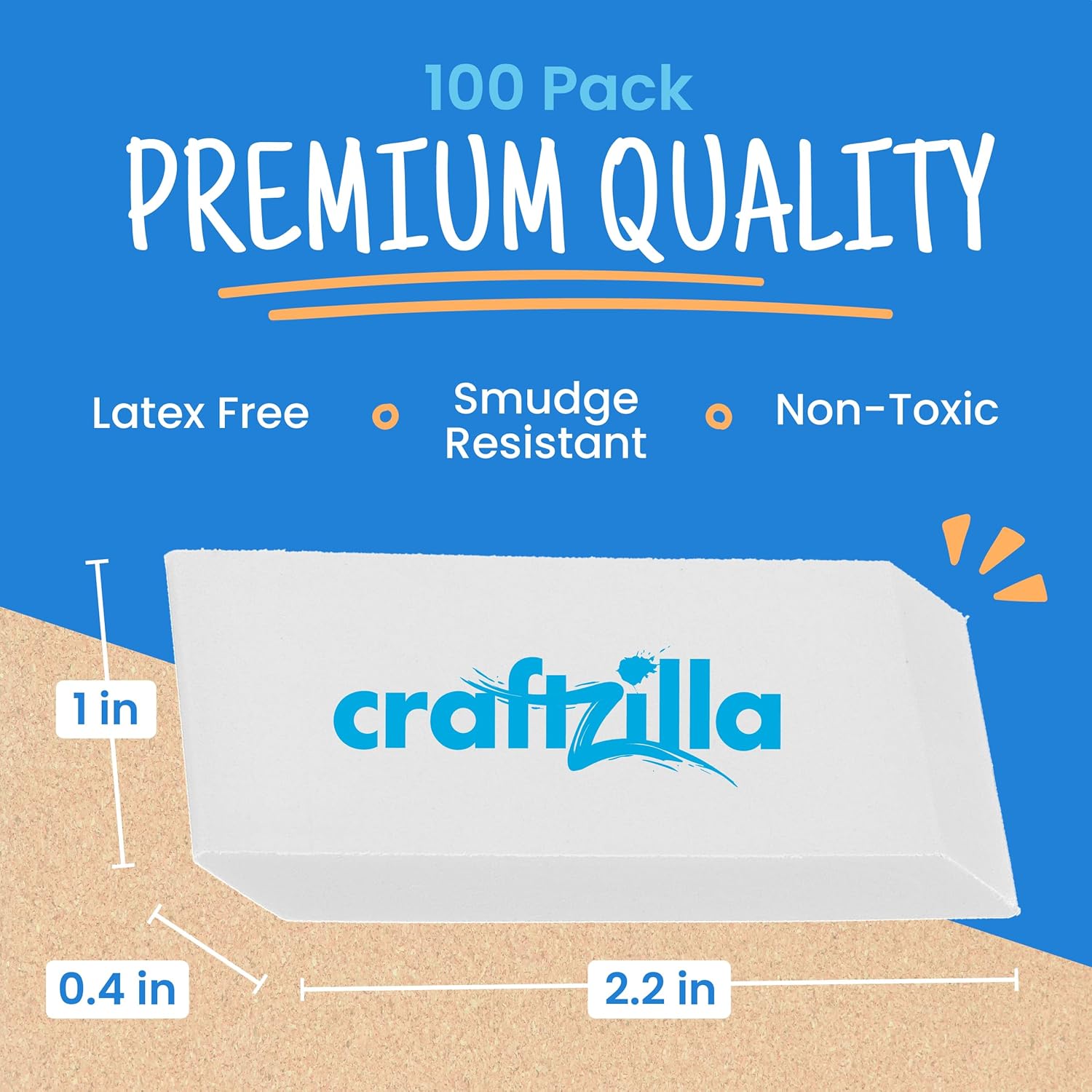 White Erasers Bulk 100 Pack - Large Latex- Free Bulk Erasers for Kids, Classroom, and School Supplies - Ideal for Pencils and Drawing - Borradores Escolares