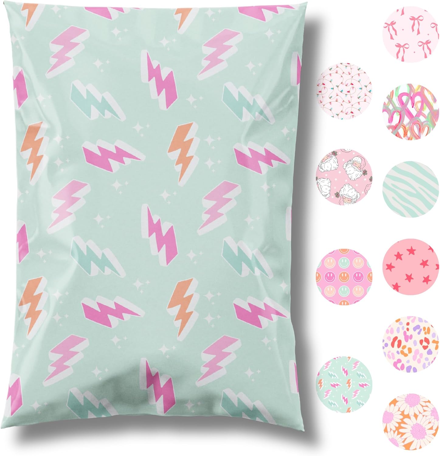 14.5x19 Designer Poly Mailer 100 Pack Heavy Duty Waterproof Self Seal Shipping Bags for Small Business Large Mailing Envelopes Bulk Tear Resistant Cute Packaging Lightning Bolt