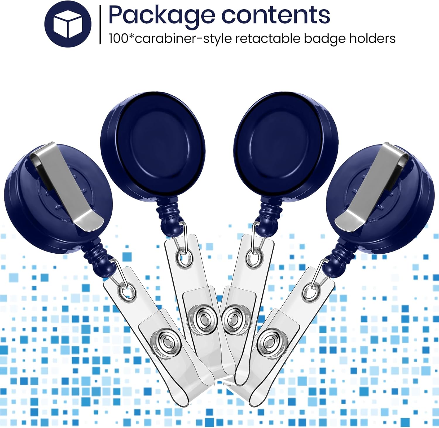 Zonon 100 Pieces Retractable Badge Reel Clips ID Card Holder Reel with Metal Belt Clip for Hanging Cards Key Chains, Name Badge Holders for Nurses Teachers Students(Dark Blue)