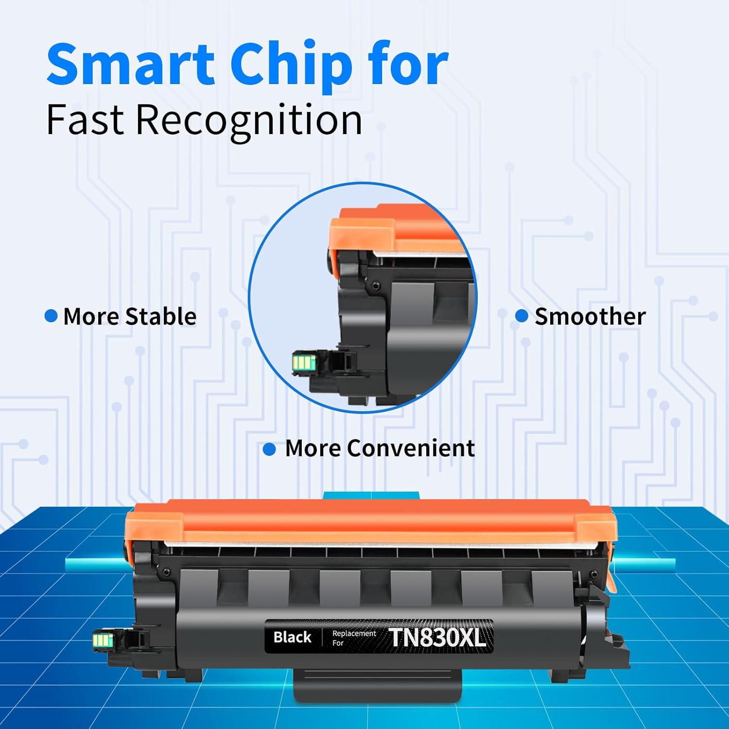 - 【Latest Smart CHIP】: Our TN830 TN830XL TN830/XL/V toner cartridge equipped with the latest smart chip ensures the high compatibility. This helps you be more productive