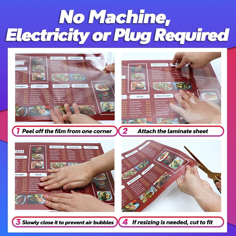 - No Machine or Heat Needed: Enjoy a seamless, instant lamination experience with Hashi self-adhesive laminating sheets—no laminator, heat, or special equipment required, making it safe for all ages.