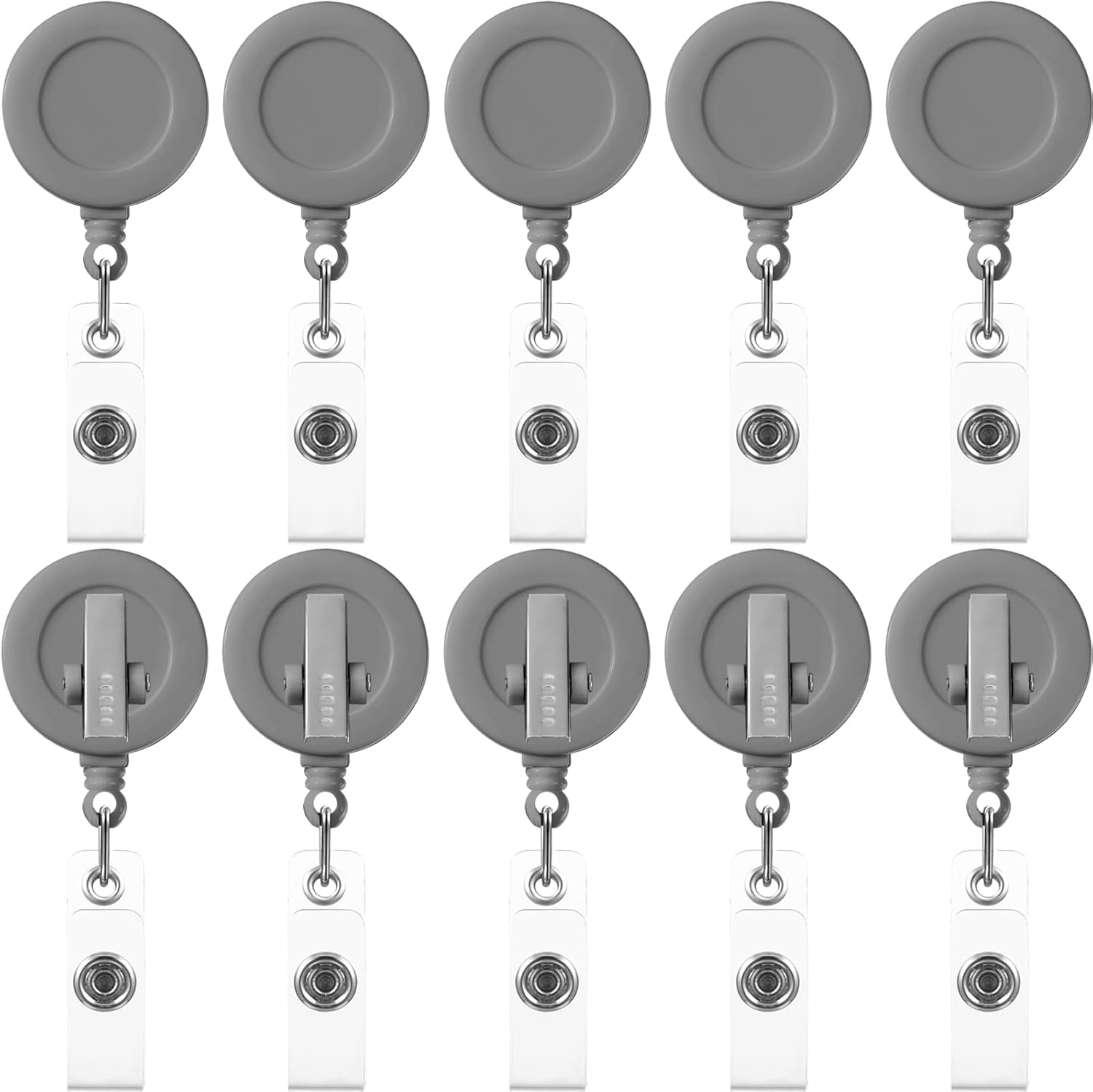 Zonon 50 Pieces Retractable Badge Holder Reels with Swivel Alligator Clip, ID Card Holder Name Badge Reel Clips for Students Teachers Office Workers (Grey)