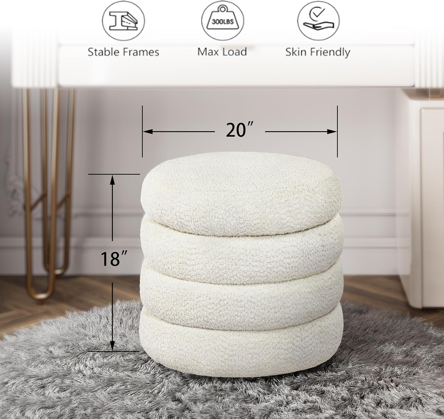 Storage Ottoman, Round Ottoman with Storage, Vanity Stool Foot Rest with Removable Lid, Round Boucle Upholstered for Living Room Pouf Footstool