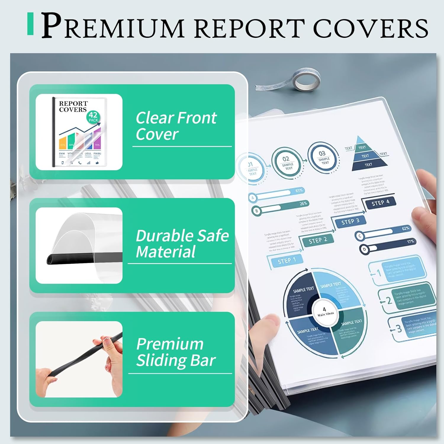 - REPORT COVERS BULK: A set of 42 clear report covers with sliding bar. These folders are the perfect choice for organizing and presenting your presentations, school projects, work resume, documents, proposals, and portfolios