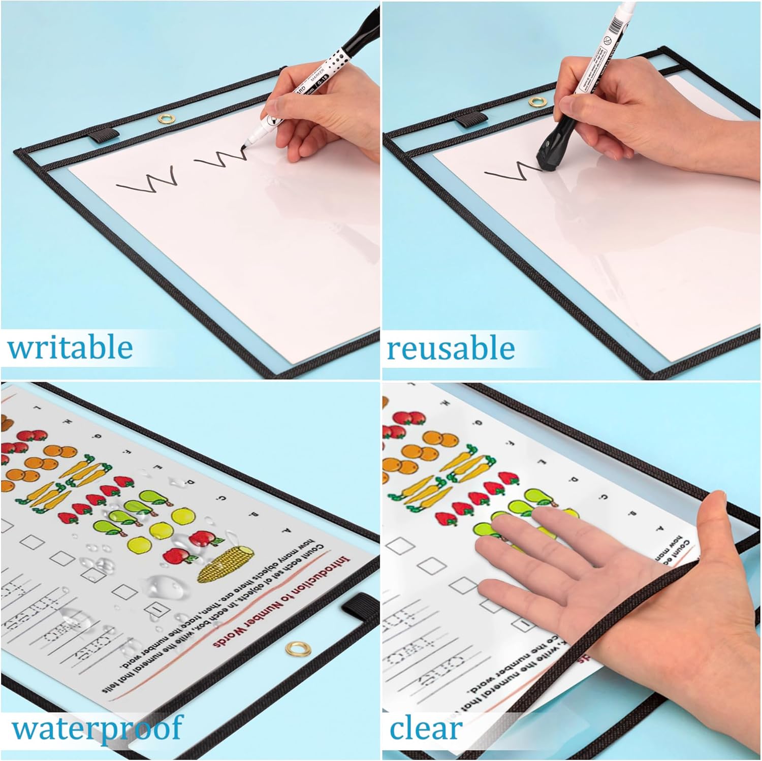 - Efficient Learning Aid: The clear PET surface supports single and double-sided worksheets. Write, wipe, and re-write with ease, making these pockets invaluable tools for interactive learning and content management