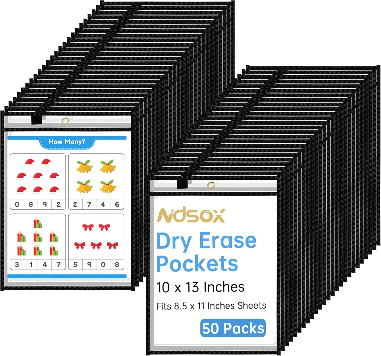 - Maximum Practicality: Our Dry Erase Pockets Set boasts 50 pack oversized (10x13 inch) pockets, accommodating standard paper sizes. Whether for student activity sheets or work files, stay organized effortlessly while ensuring easy insertion and removal