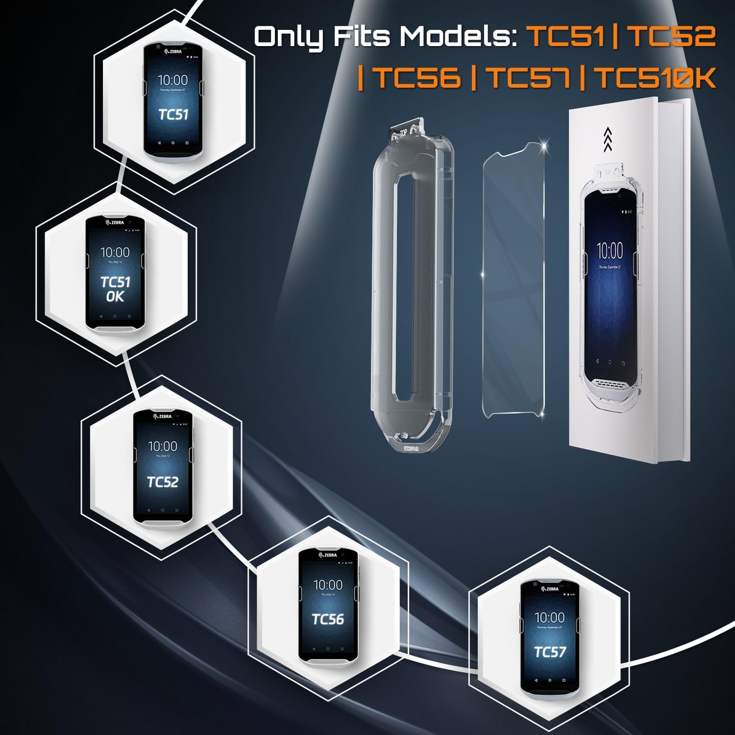 Screen Protector for Zebra TC51 TC510K TC52 TC56 TC57 Barcode Scanner, Tempered Glass [Military Grade Shatterproof & Long-Lasting Durability], Full Coverage, Easy Installation, 2 Pack