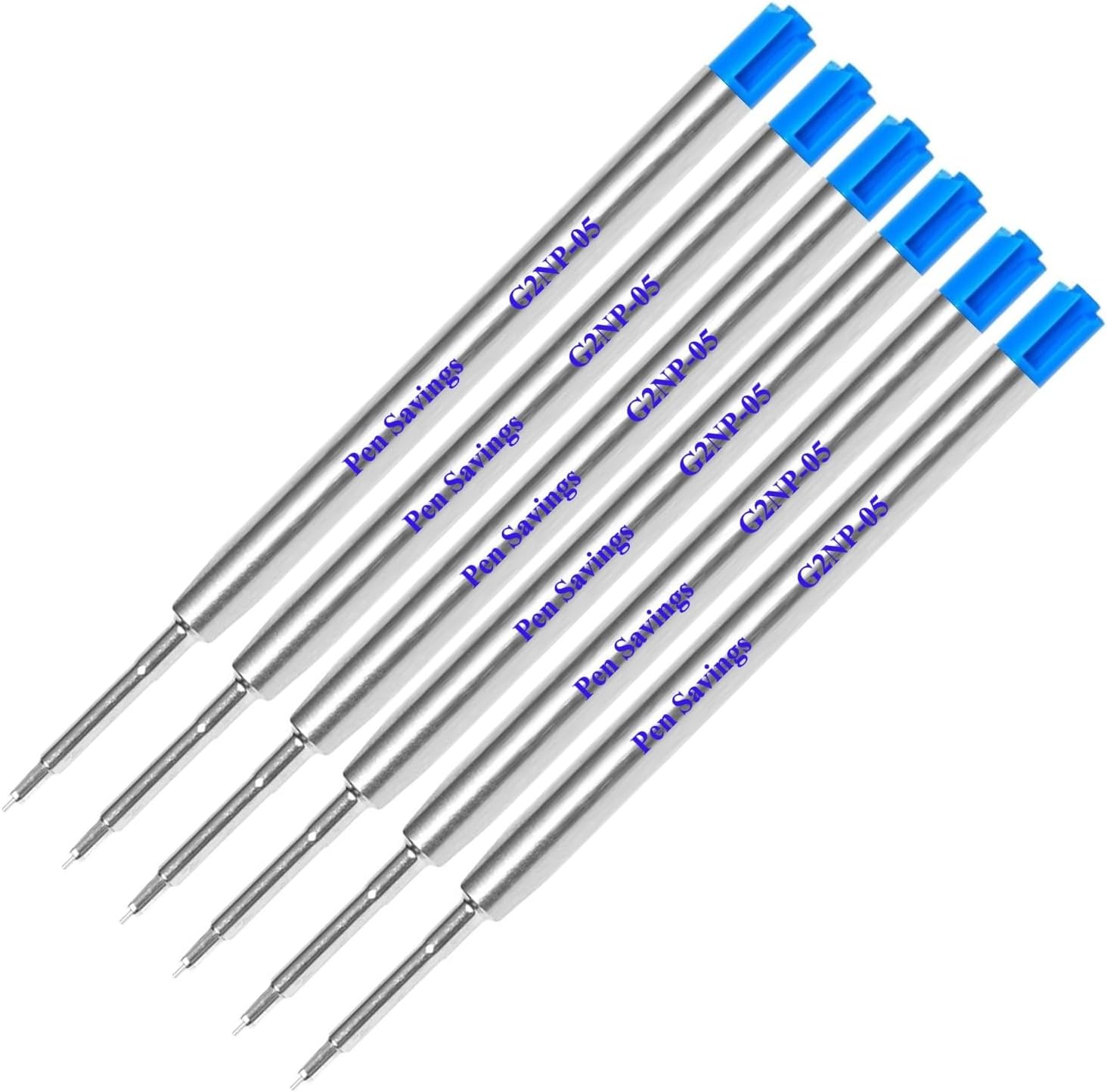 6 Pack, Pen Savings Gel Pen Refills Compatible with Parker Ballpoint Pens, .5mm Extra Fine Needle Point, Smooth Writing, Frictionless Flow (Bulk Packed) (Blue)