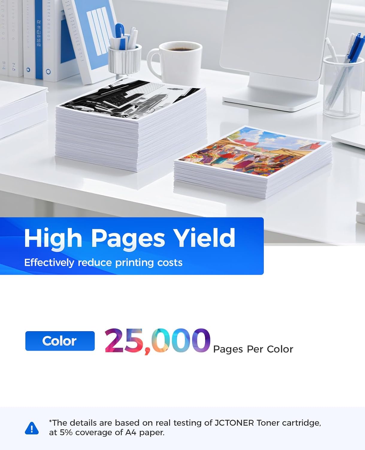 - The latest chip version: The JCTONER toner cartridges are equipped with the latest version of built-in chips, ensuring perfect compatibility between each toner cartridge and the printer. This enables you to print efficiently while maintaining stability and reliability, making installation convenient without the need for manual adjustments. All JCTONER toner cartridges have undergone strict quality testing and have obtained ISO9001 certification. High-quality toner cartridges can meet the demand for high printing volume. The fine toner ensures clear and stain-free printing results and extends the lifespan of the printer. You can purchase with confidence.