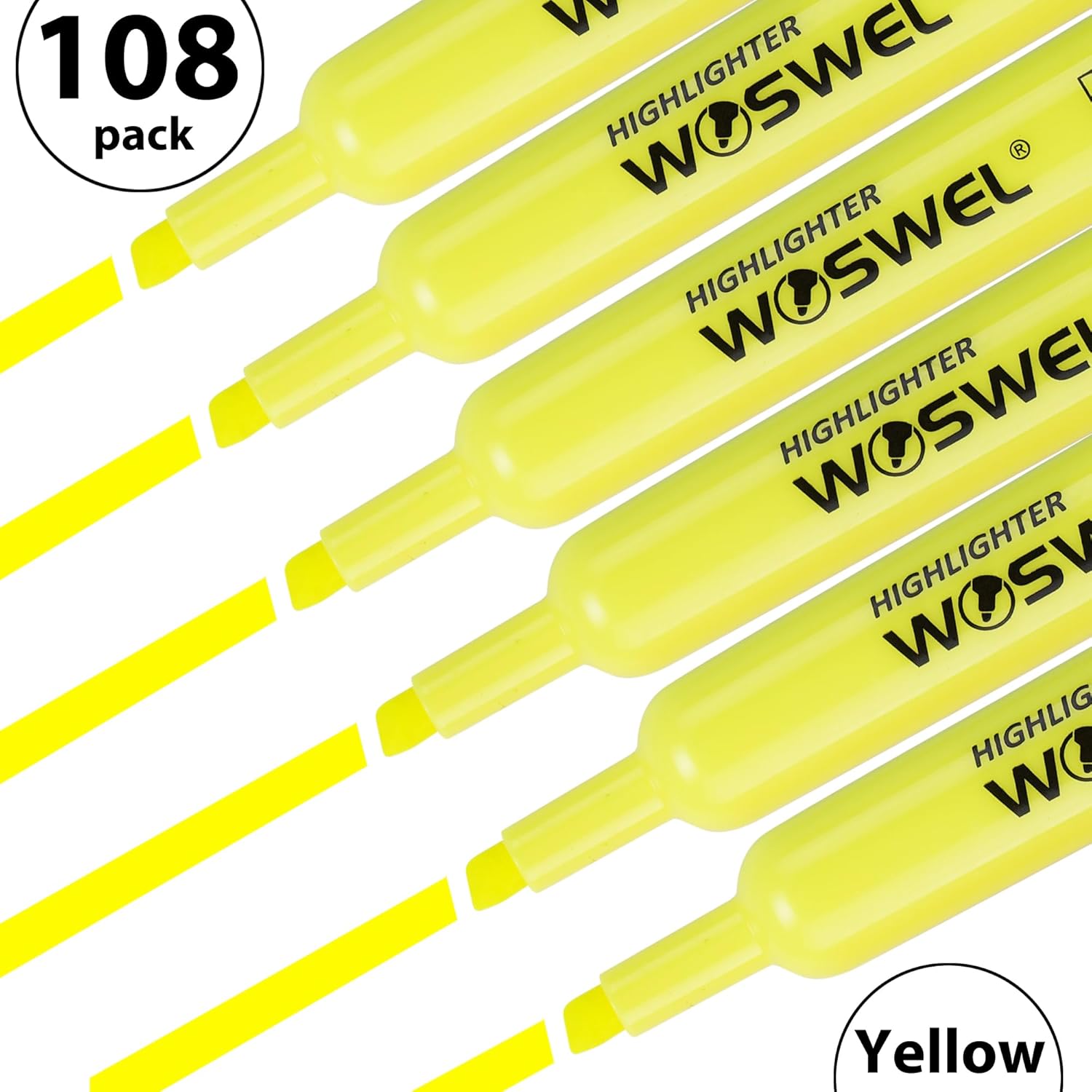 Highlighters Bulk, 108 Pack Tank Style Highlighters Set, Fluorescent Yellow, Chisel Tip Highlighter Markers Bulk for Kid and Adult Coloring, Highlighting as School Supplies