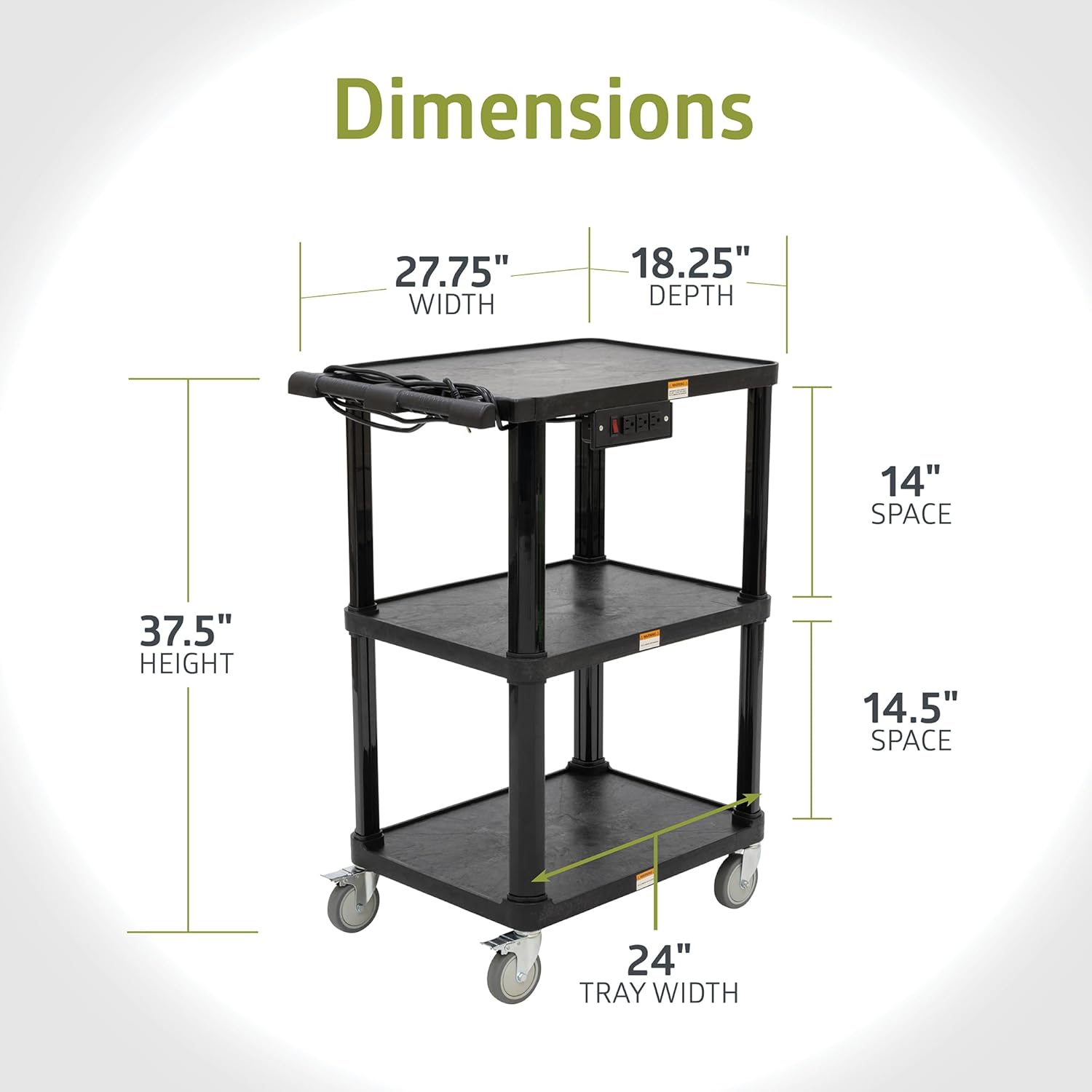- EFFICIENT DESIGN: Features 3 spacious, flat-top shelves with ergonomic lipped edges and a 3-outlet power strip with an 8' cord to accommodate electronics, keeping them charged and easily accessible