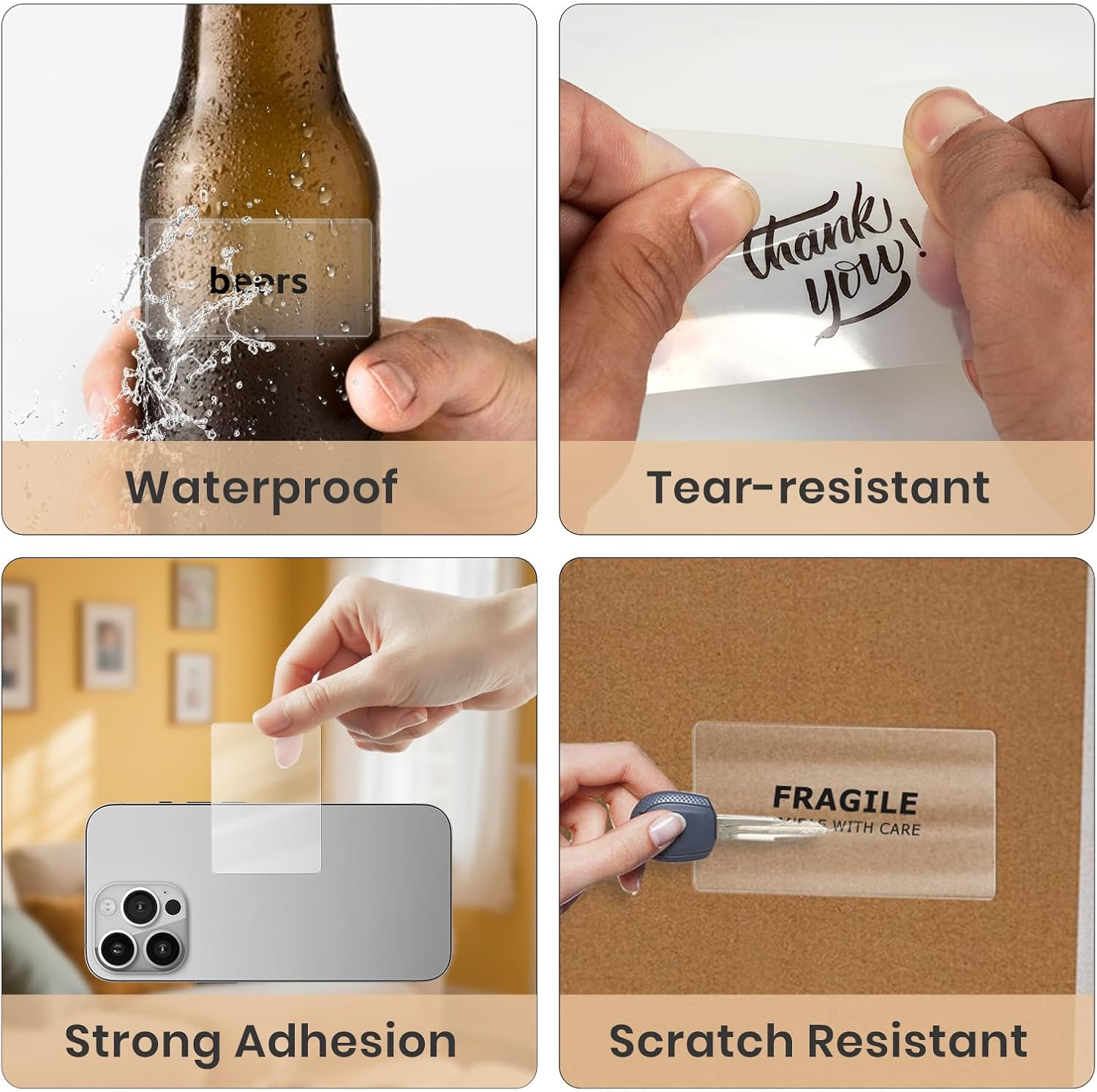- Personalized: You can create custom business logo, thank you stickers, gift tag stickers or print QR codes, barcodes, name tags, address on products. Printable labels can also be easily written on the surface with a marker pen.