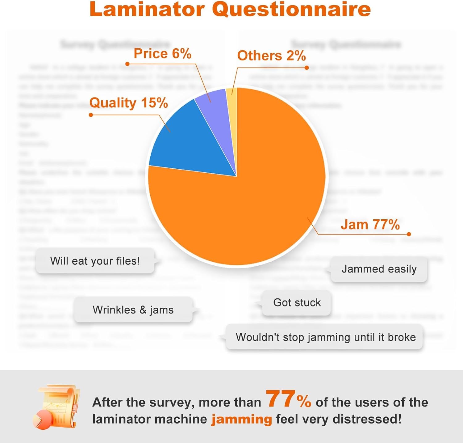- 【100% Never Jam】 Paper jams are a common issue with laminate machines. The Bonsaii Home laminator features patented anti-jam technology that effectively prevents jams, safeguarding your items and ensuring optimal protection.