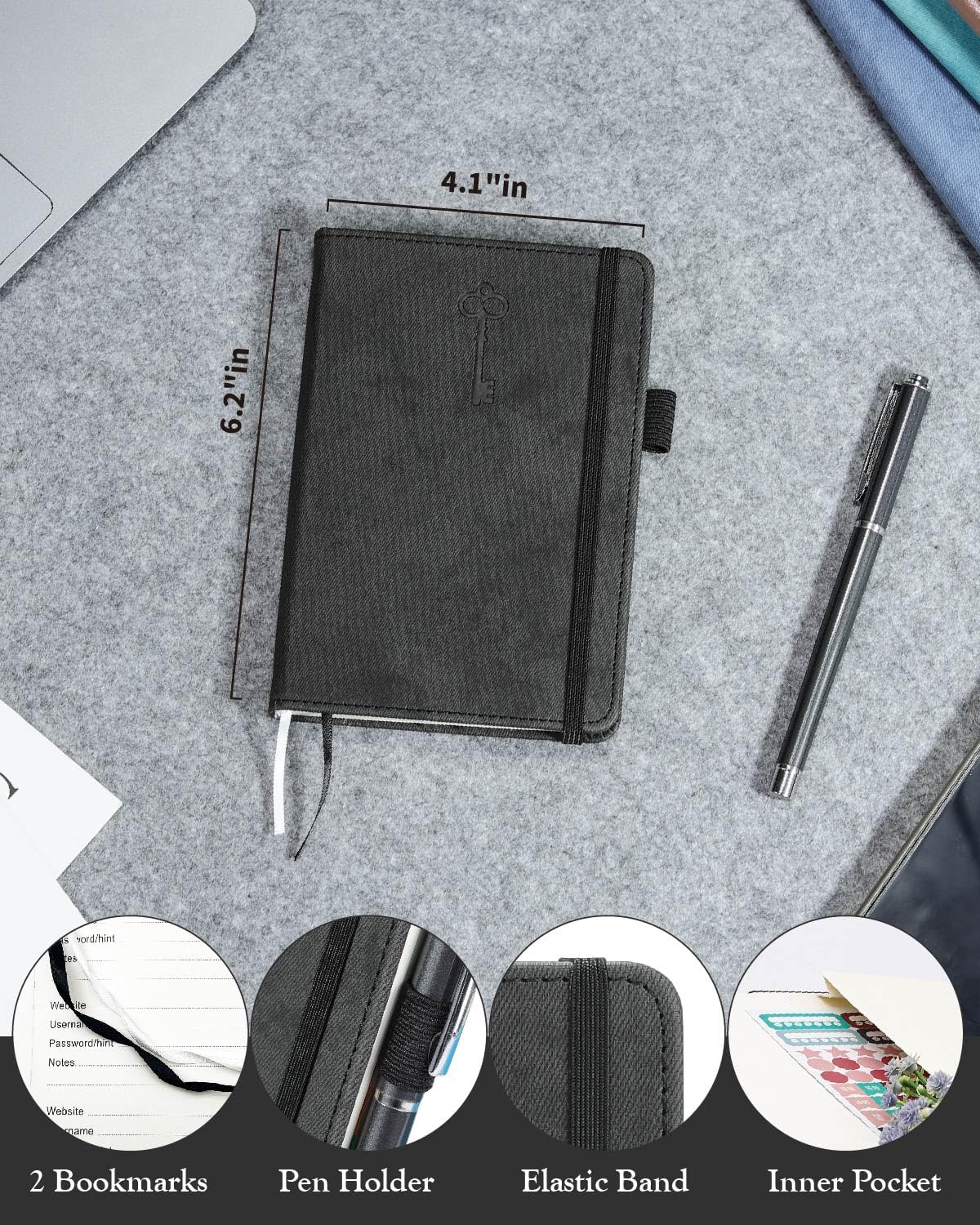 - Intimate Add-ons - Measuring 4.1"×6.2", this book for passwords comes with 2 ribbon bookmarks in different colors for easier searching; 1 elastic closure straps to hold the book shut or keep pages neat and clean; 1 elastic pen holder on the side; and 1 compact pocket with reinforced sides to store notes, cards, or small fidgets.