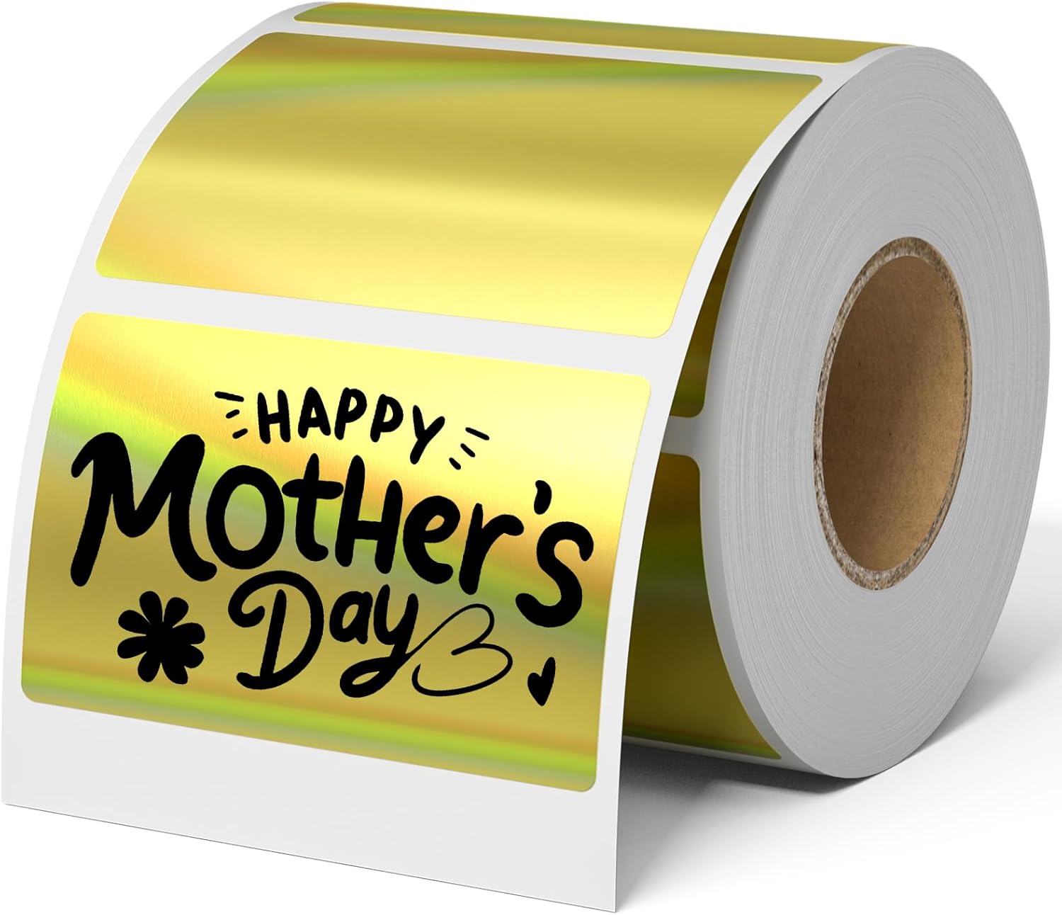 - 【Specifications】Gold Holographic thermal stickers labels, 2.25”x1.25” rectangle, 400 labels per roll