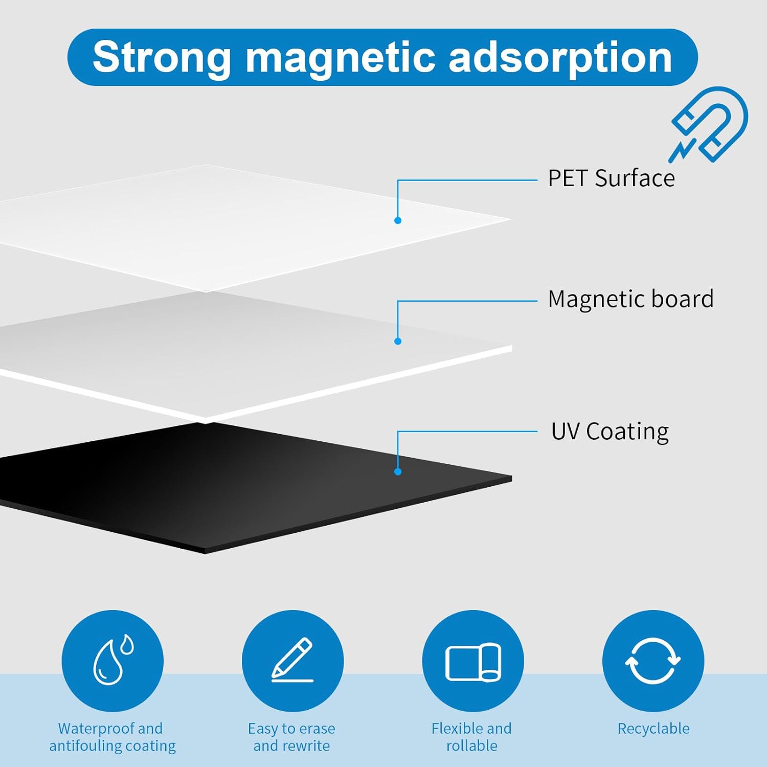 - 【Super Strong Magnetism】Lyzzxi magnetic whiteboard paper are available in different sizes and are made of high quality strong magnetic material, the magnetism is very stable and can provide stronger adsorption, which won't be weakened by time or frequency of use.Just put it down gently and board will stick firmly to the fridge and won't fall off any way you open the door unless you seriously try to tear whiteboard off.