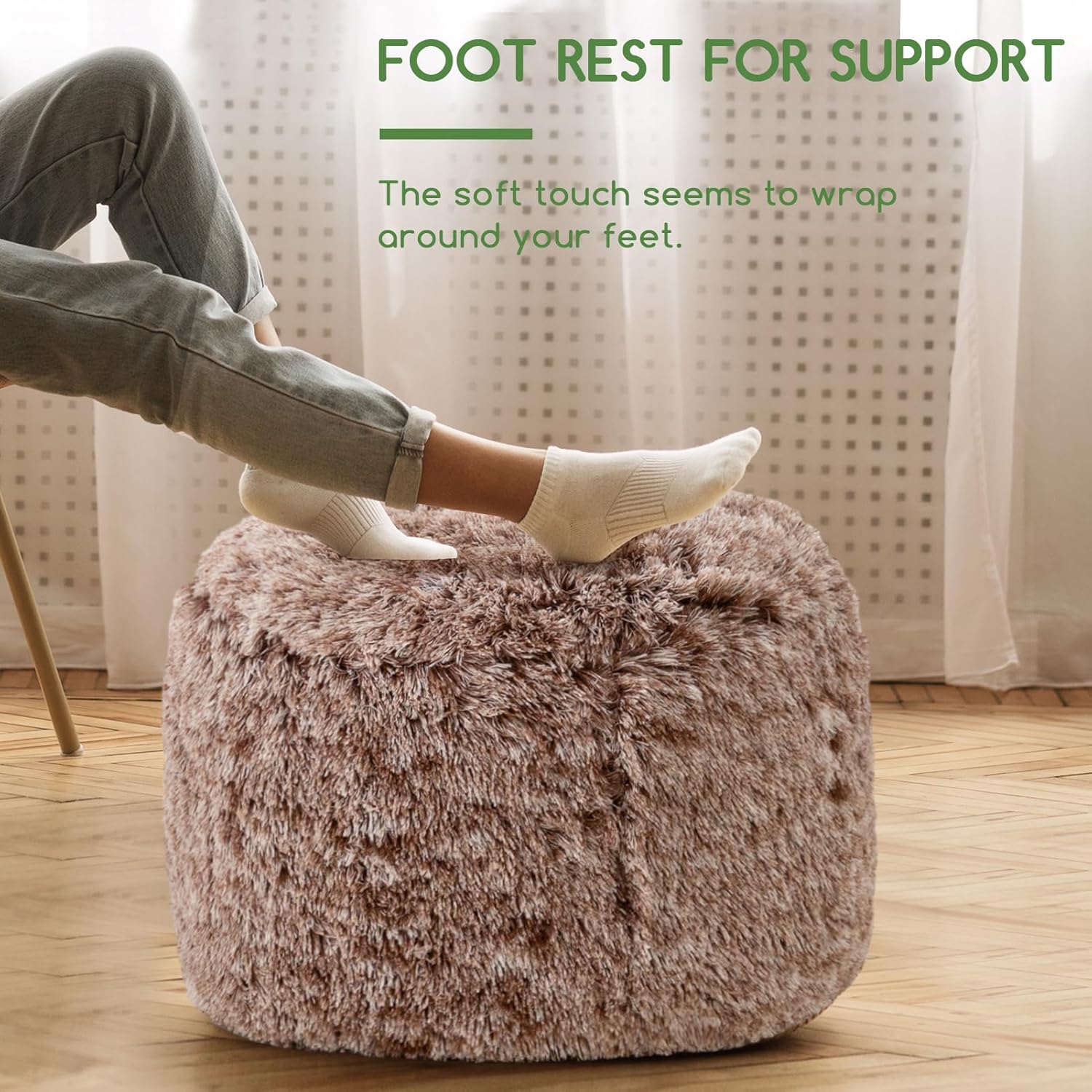 - The HIGOGOGO pouf ottoman with a soft and plush long-haired outer layer and full filling, making it perfect for use as an ottoman foot rest or seat cushion.20x20x15 inch size, this ottoman pouf is versatile enough for use with a coffee table, side table, or floor cushion in any room of the house.