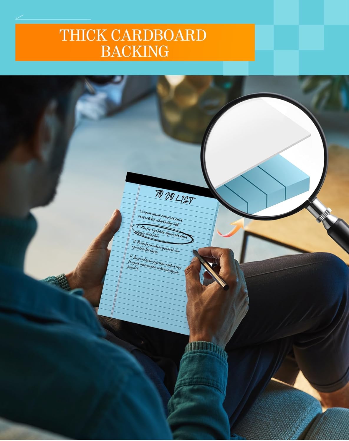 - [STABLE WRITING EXPERIENCE] With reinforced hardboard backing, this 5x8 legal pad provides a firm surface for writing pads in any setting. It ensures stable writing that won’t easily come apart, maintaining office notepad usability even in less-than-ideal conditions.