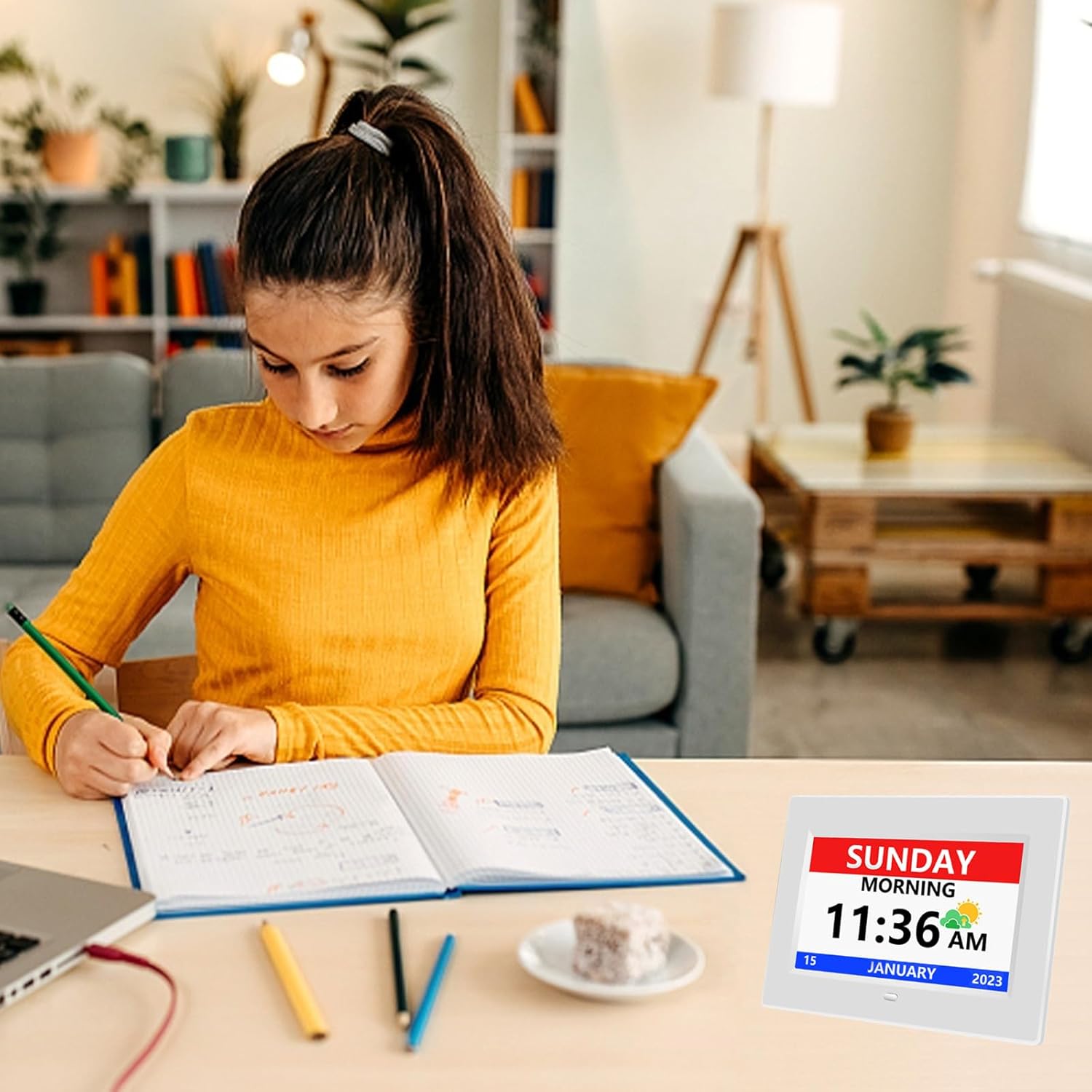 - Easy to Read:The digital clock for elderly has a 7-inch display that clearly displays the time, date, day of the week, four time periods of the day [morning, afternoon, evening, night], and displays the ICONS of each time period, non-abbreviated large font helps the elderly easily read the time