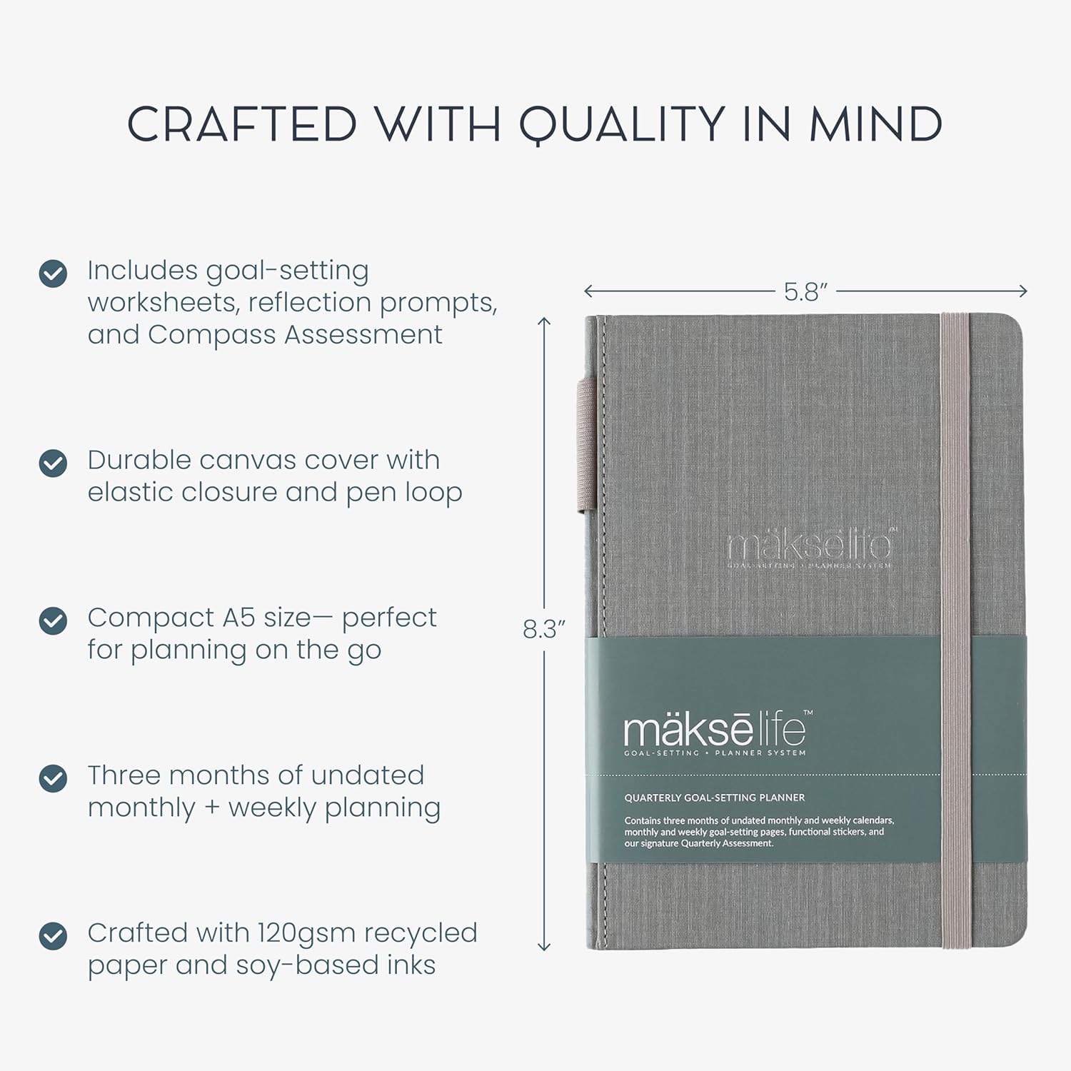 - Integrated quarterly design: The MäksēLife goal setting planner combines tracking, planning, and reflection in one package, streamlining personal development through its quarterly planner layout