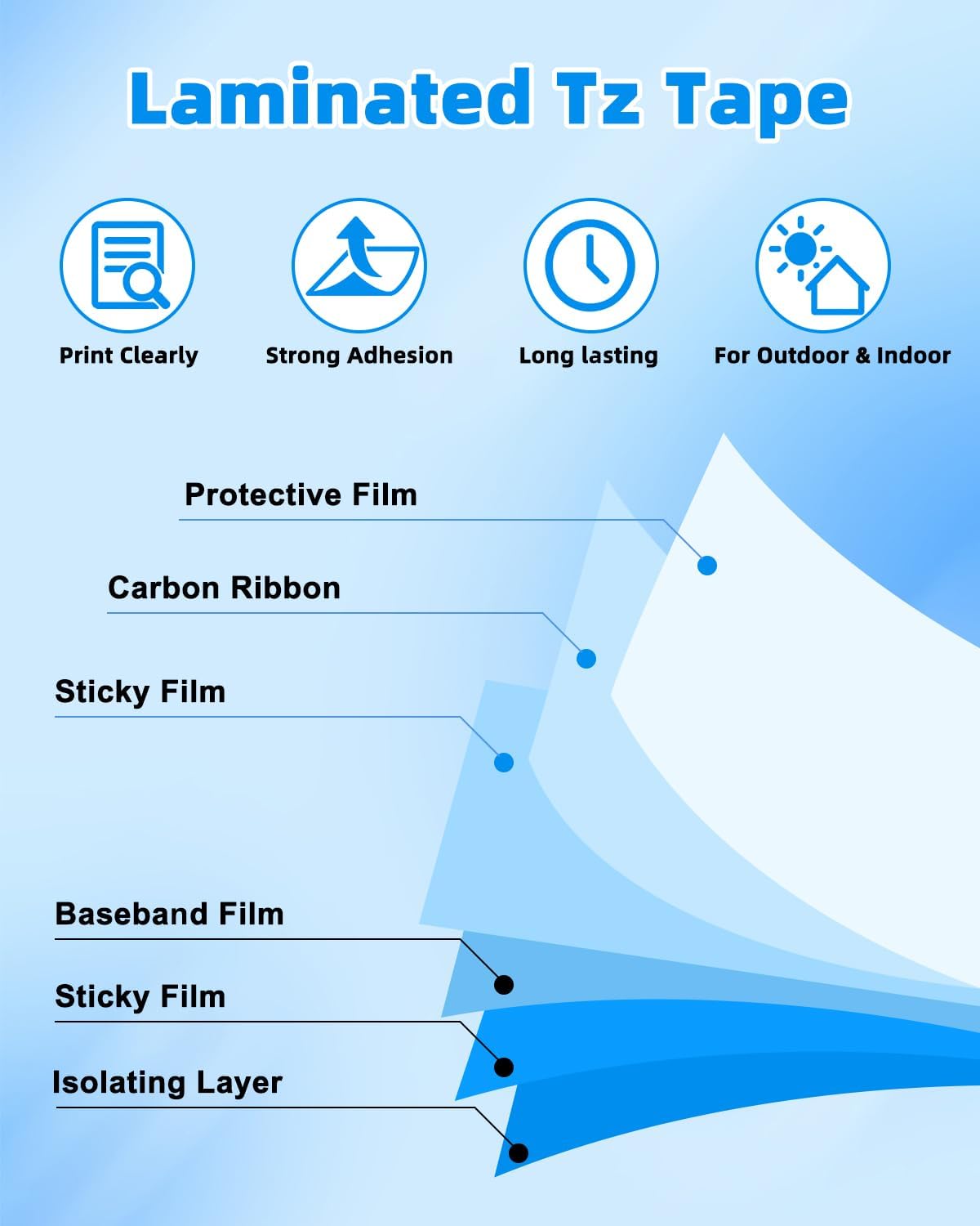 - BAALAND TZe231 label maker tape is crafted with a laminated design for enhanced durability. Water-resistant, temperature-resistant grease-resistant, and grime-resistant features make it ideal for both indoor and outdoor use, maintaining label clarity in various conditions
