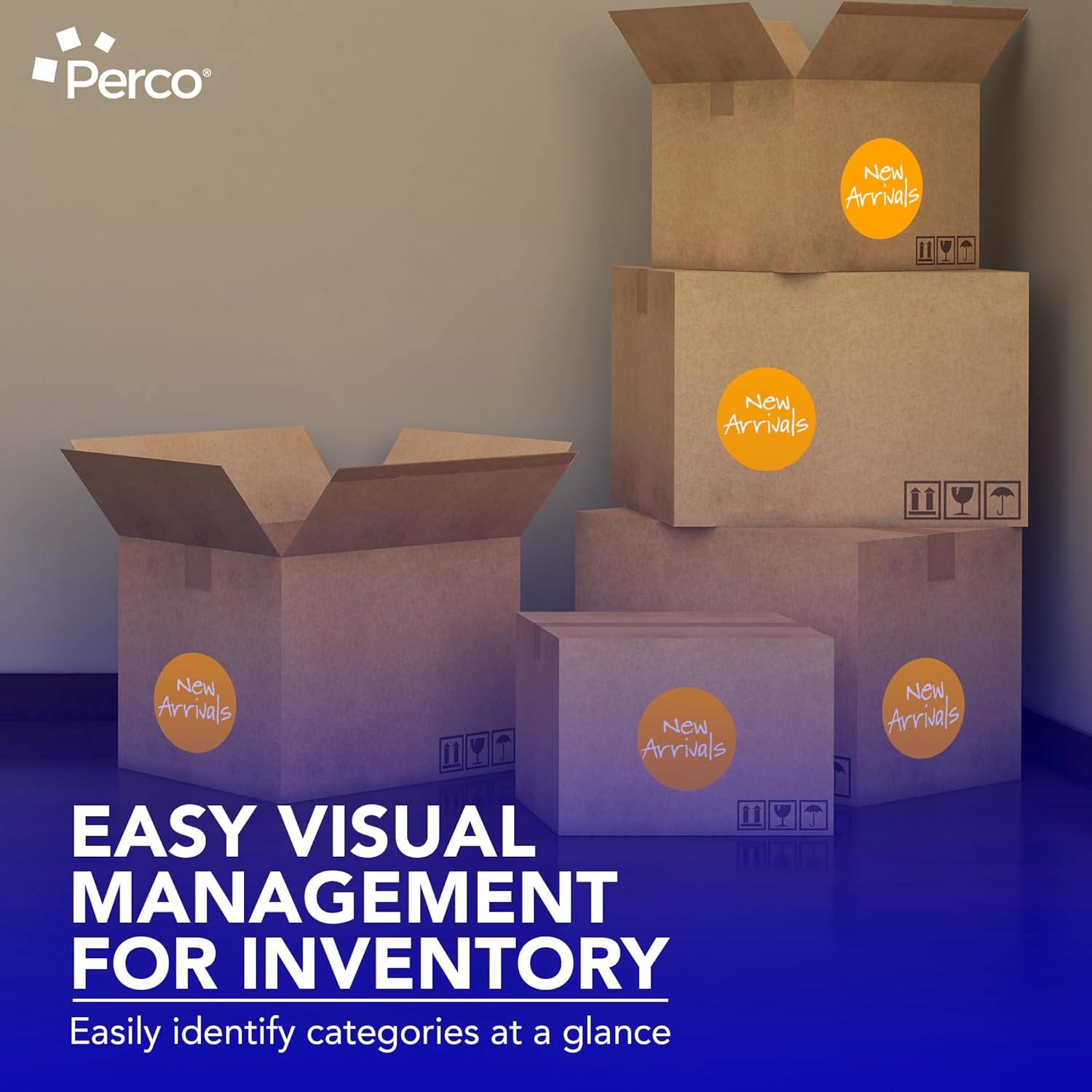 Perco Fluorescent Orange 4-Inch Round Circle Dot Sticker Labels with Easy Peel Perforation - 400 Labels per Roll - Strong Adhesion, Vibrant Colors for Organizing, Crafting & More - Made in USA