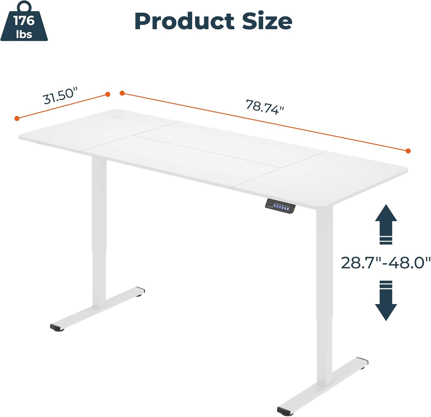 Adjustable Standing Desk, Large 79x31 Inches Standing Desk with Cable Management, Height Adjustable Home Office Computer Desk with Memory Preset&Charging USB Port&Sedentary Reminder