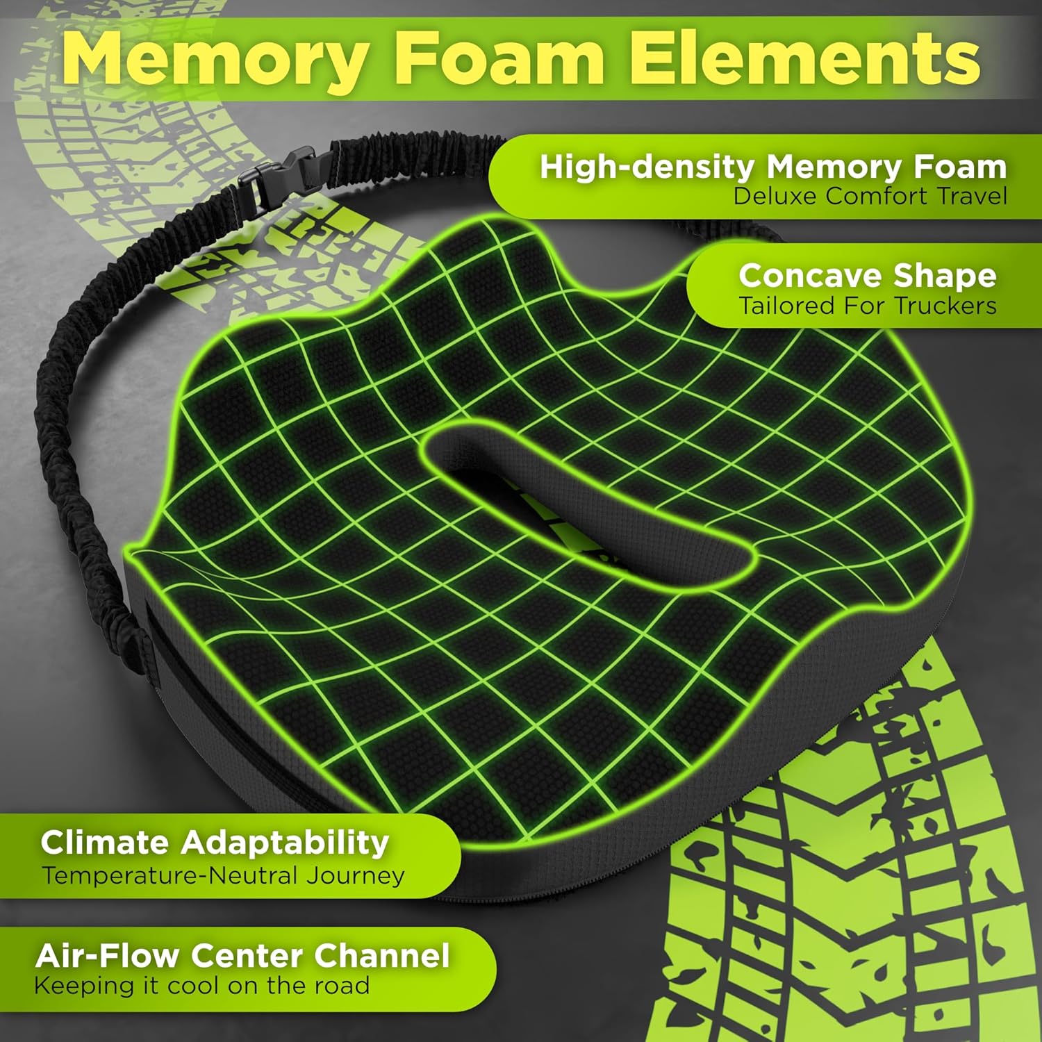 Large Truck Seat Cushion for Truck Driver Seat Cushion - Upgraded Back Support, CertiPUR-US® Certified - Thick Memory Foam, Pain Relief for Hours of Driving, Trucker Approved Big Rig - Black
