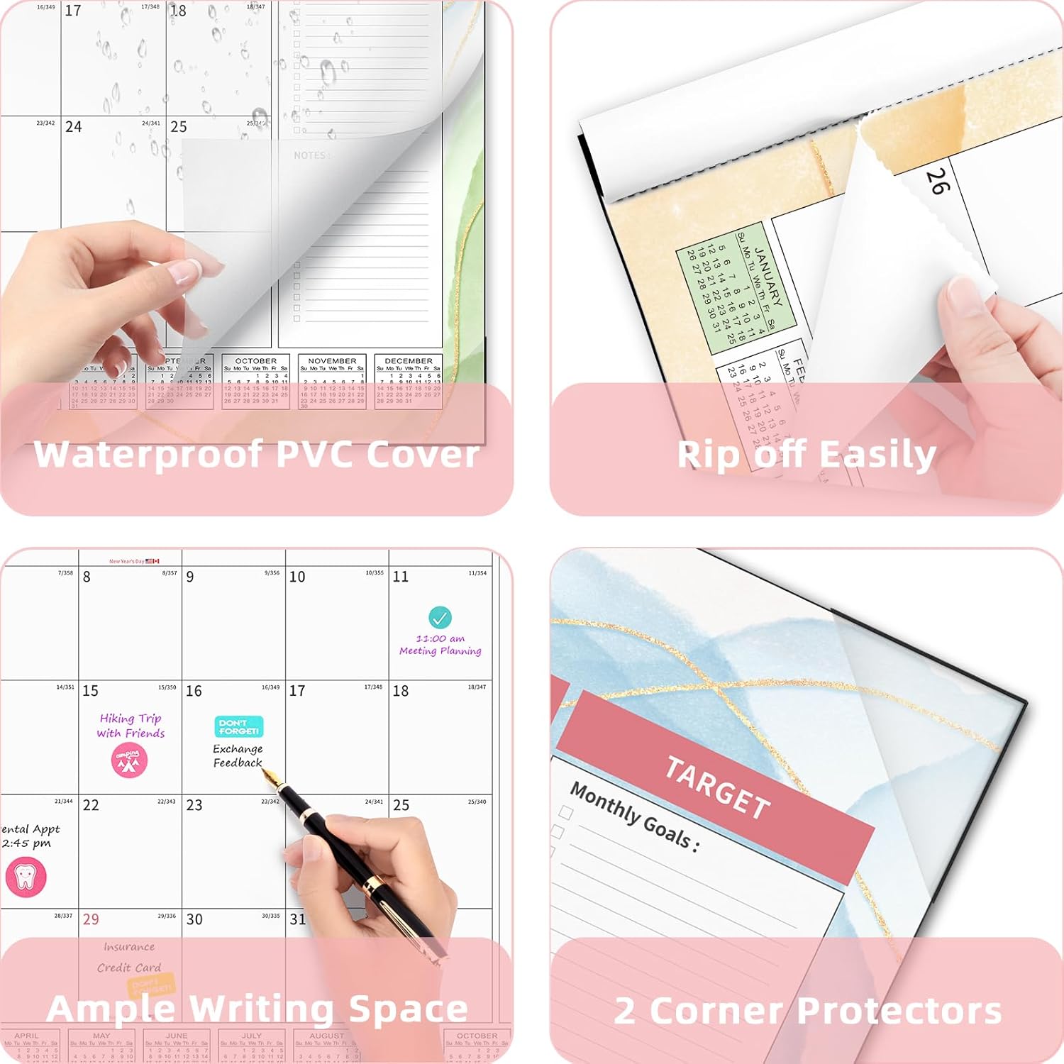 - 【Premium Thick Paper】With a weight of 0.264lb per sheet, the 2025 calendar is designed using premium thick paper, ensuring a high-quality writing experience. It is resistant to ink seepage, resulting in clean and crisp writing. To safeguard the calendar from dust and liquids, it comes with a transparent PVC cover. Two corner protectors are included to keep the pages flat. Plus, the cutting line allows for effortless tearing of each month's page. This desk calendar is perfect to long-term use.