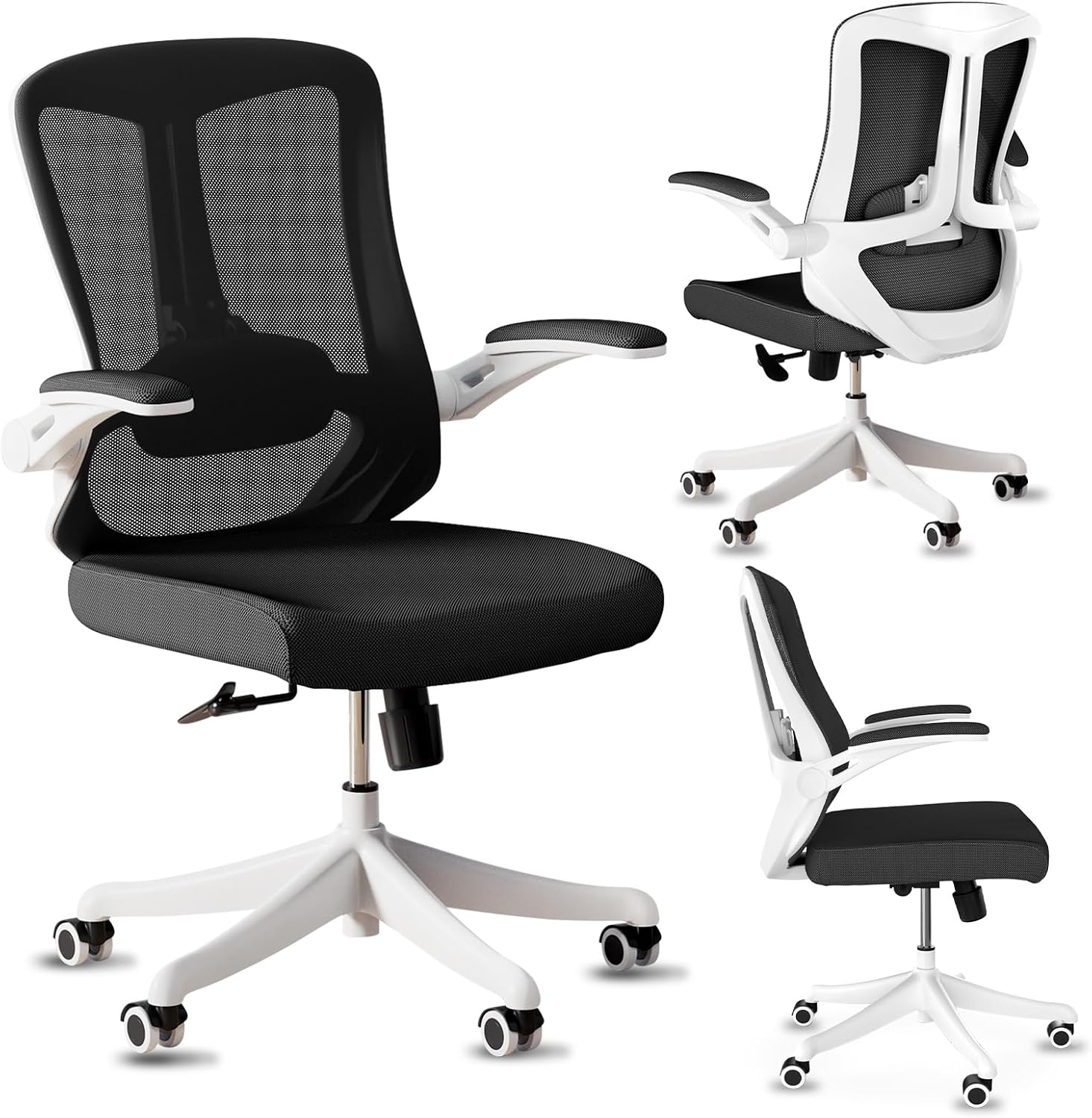 - 【Function and Design】Ergonomic design helps the backrest has prominent lumbar support to help you maintain a relaxed posture during long hours of work or study, comfortable mesh with back support points can fit the natural curvature of the spine, the armrests of the computer chair can provide comfortable support for the arms, and it can be flipped up when not in use, effectively saving space
