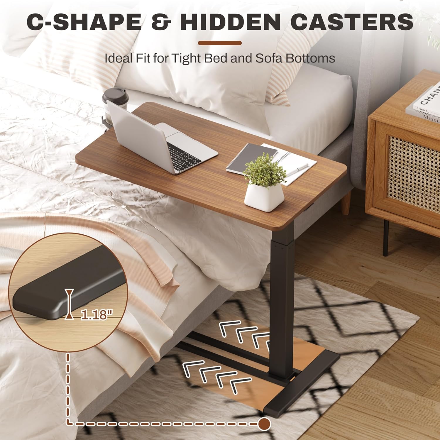 - Multi-function in One Design:This rolling computer desk offers a reliable and convenient desktop surface for anyone to use near furniture like beds, couches and recliners. It can also be used as breakfast tray for bedridden patients and elderly (e.g. eating, reading, working)without having to get off their beds.