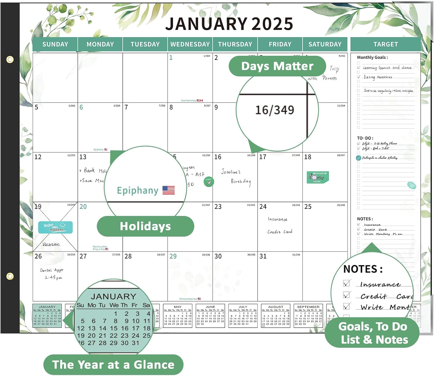 Ospelelf Desk Calendar 2025-2026 Large 22"x17" Monthly Planner Pad with Plastic Cover 18 Months Green Leaves