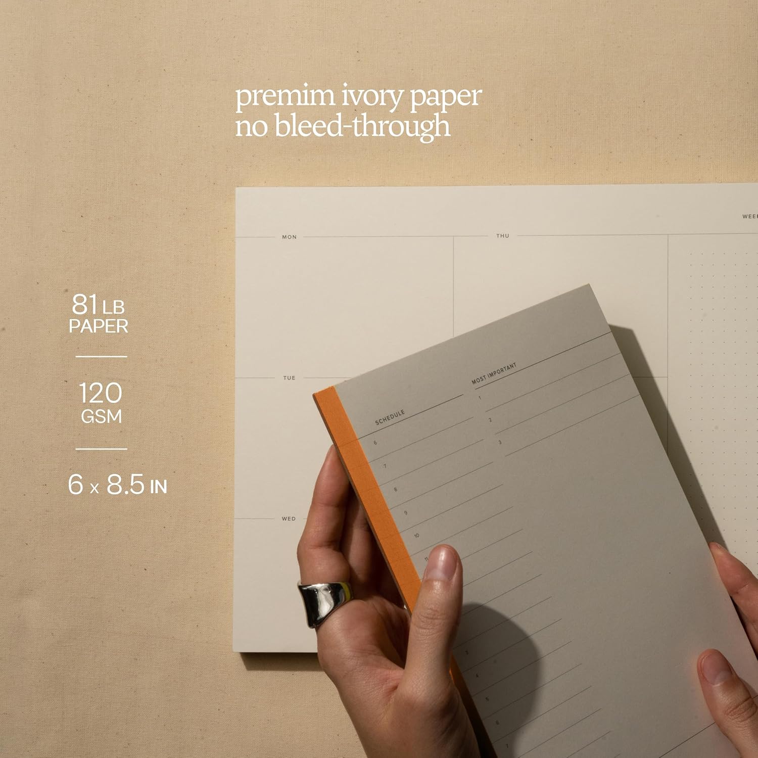 - Thick Ivory Paper: 81lb (same as 120gsm); it makes for a wonderful writing experience
