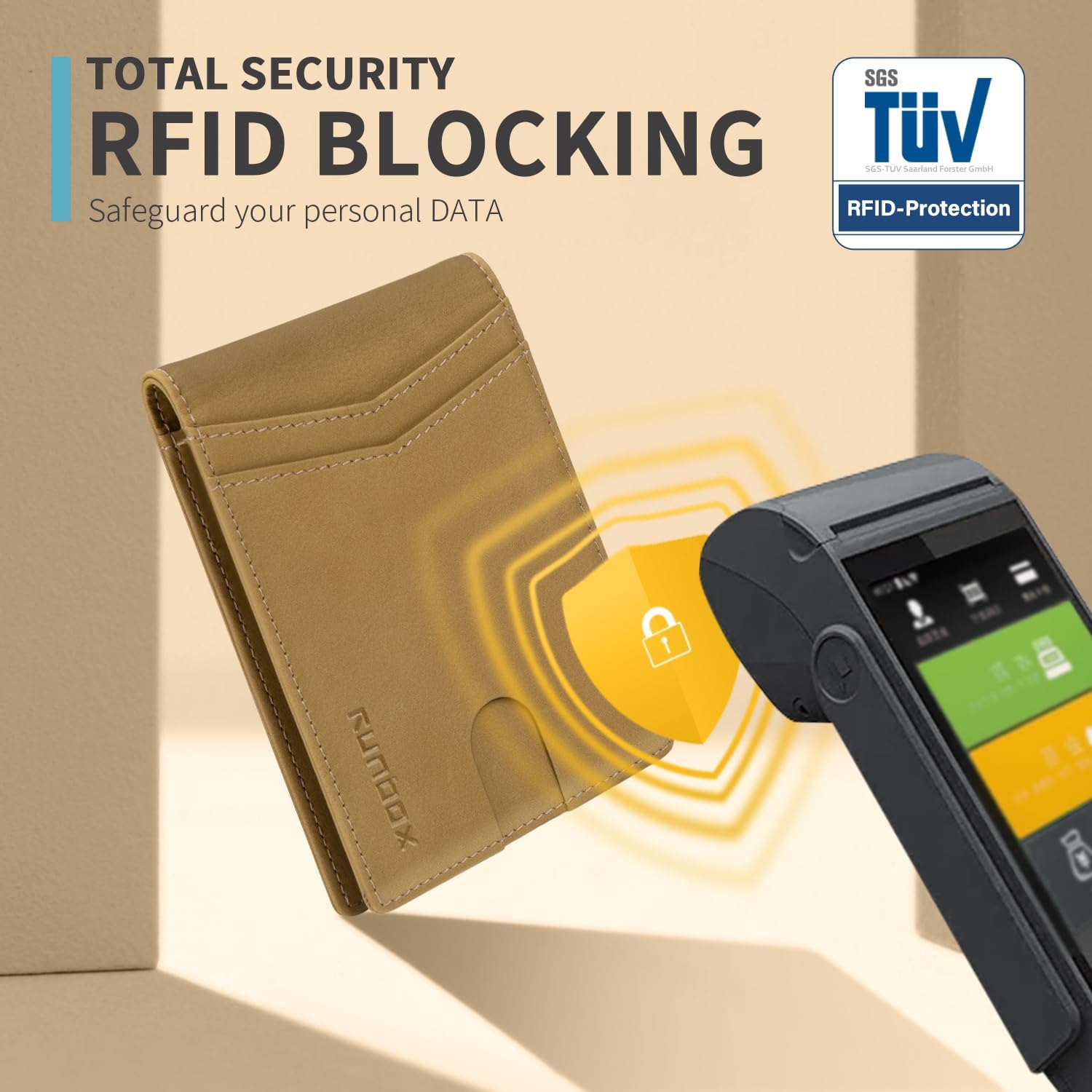 RUNBOX Wallet for Men Slim Rfid Leather 2 ID Window With Gift Box