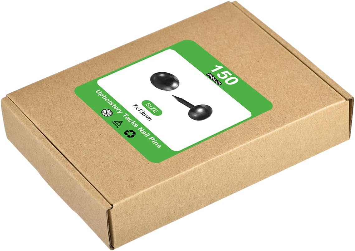 - Specifications: Material: Carbon steel; Color: Black; Diameter of nails head: 7mm/0.28inch; Shank length: 13mm/0.512inch; Package Content: 150Pcs x Upholstery Tacks Nail Pins