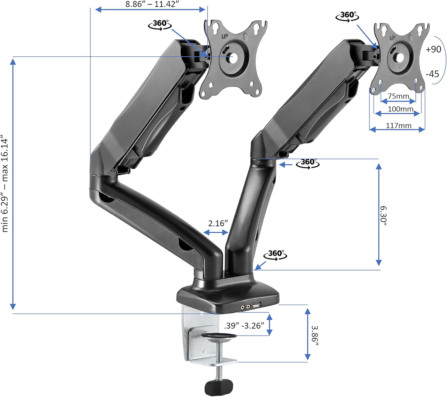 - ELECTRIC Standing desk converter computer workstation bundle - includes R EDRB-46 Electric Desk Riser, R MA2 Pneumatic Premium Dual Monitor Arm and a conveniently placed 10.5" wide tablet or phone slot, for even more convenience and functionality