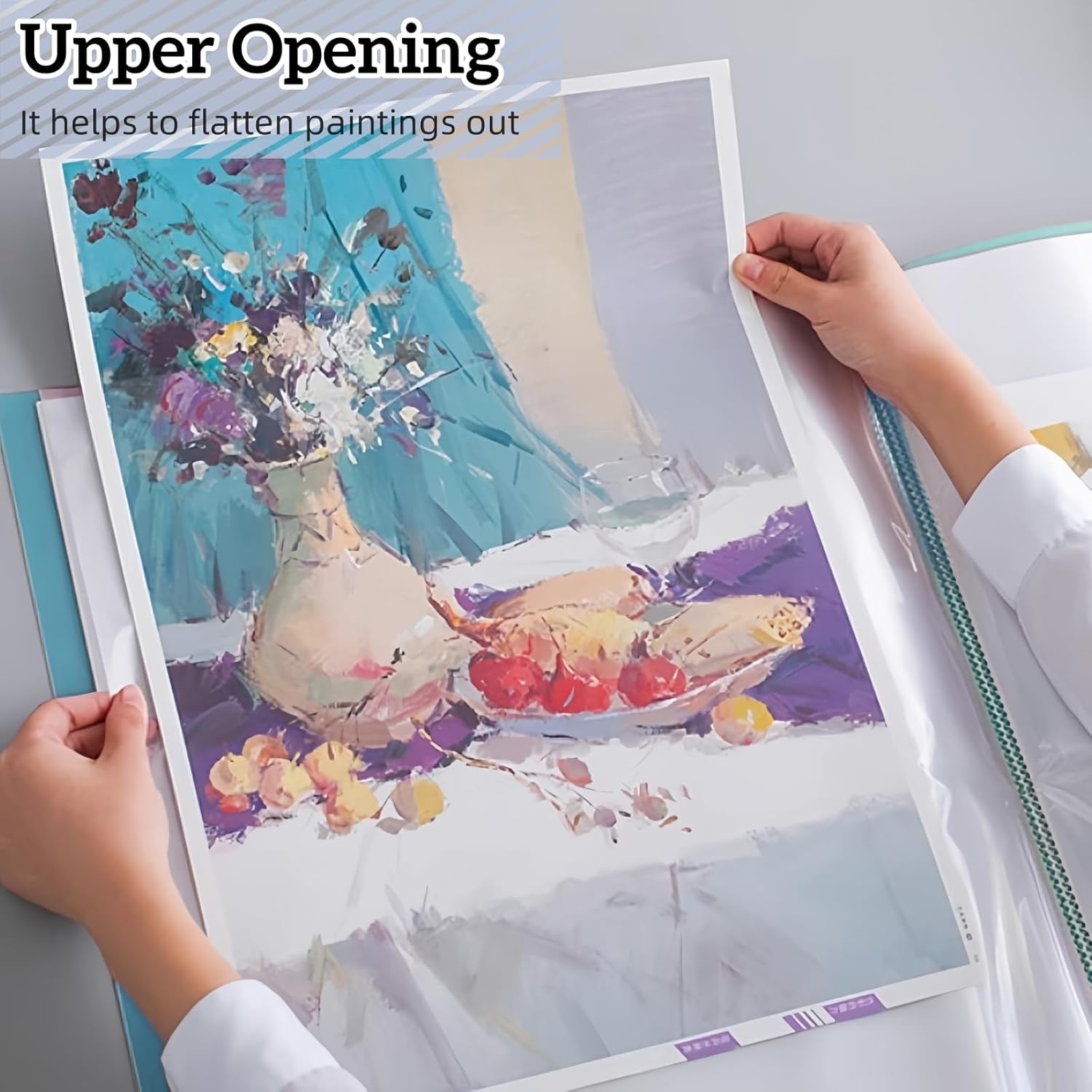 - Large Capacity: This art portfolio has 30 sleeves and 60 views (holds up to 60 pages back to back). Transparent sleeve allows you present your diamond painting conveniently.