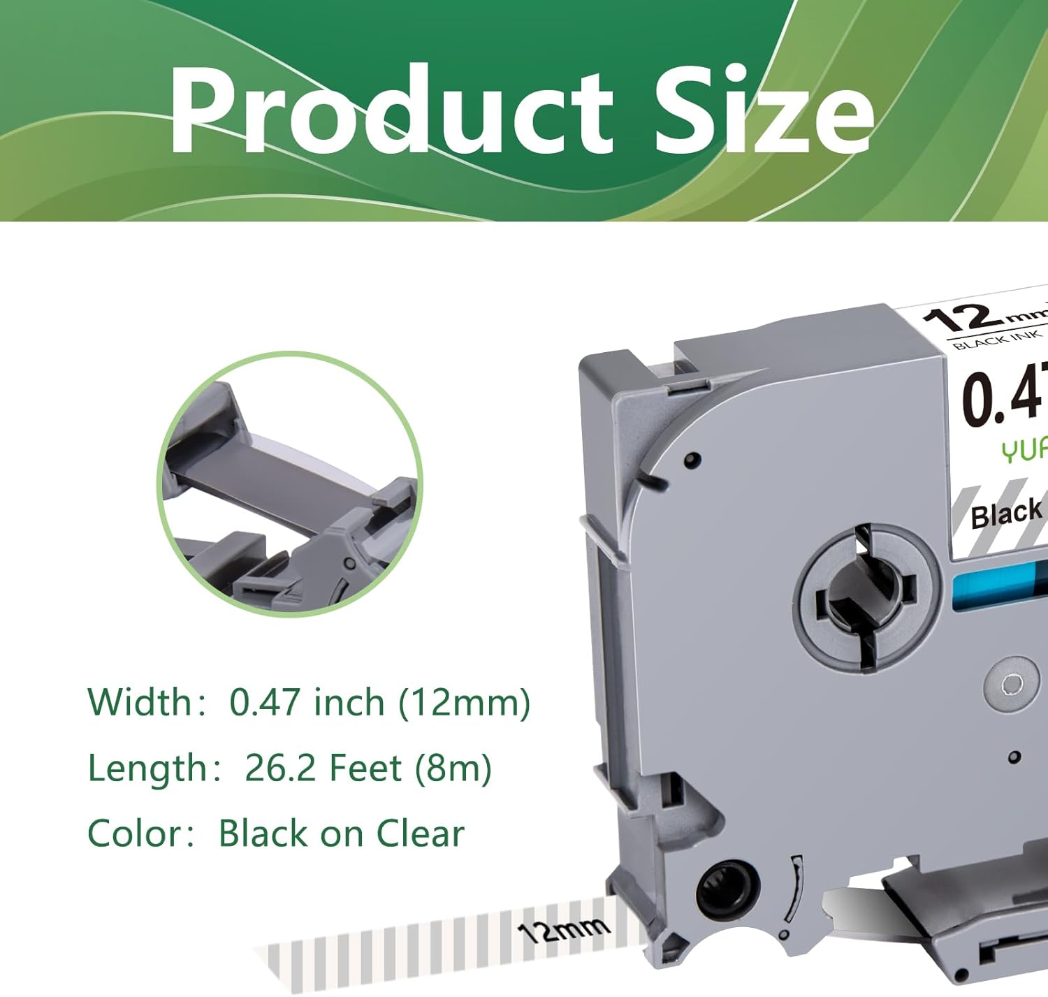 - Width: 1/2 inch (12mm 0.47 inch), Length: 26.2 feet (8m) for each laminated label clear tape. Color: Black on clear