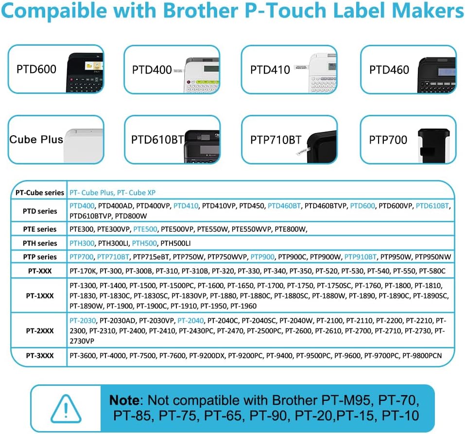 - The tz tape 18mm 0.7 laminated white compatible for Brother p-touch label maker: PTD400 PTD600 PTD400AD PTD400VP PT-D450 PT-D600VP PT-P700 PT-P710BT PT-P750W PT-E300 PT-E500 PT-E550W PT-H500LI PT-2730 PT2430PC PT-1880 PT-1830 PT-1890