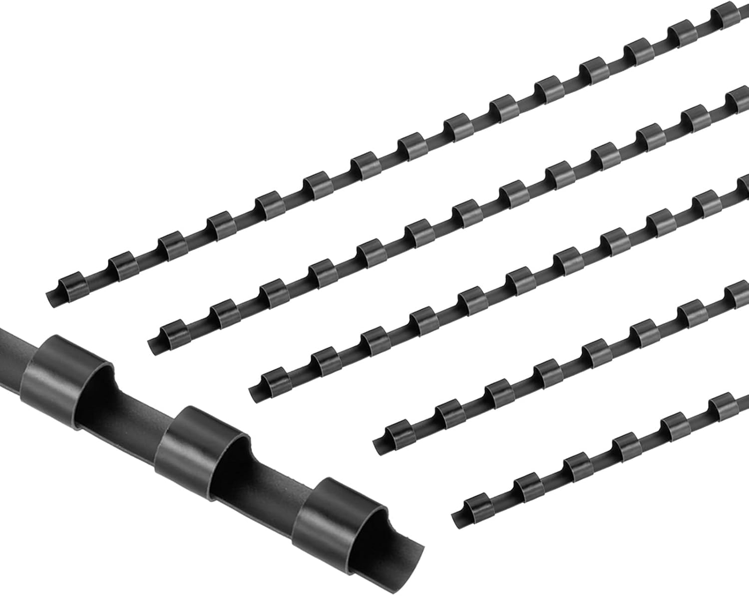 - Specification: Inner diameter: 6mm (1/4 Inch); Length: 300mm/11.8 Inch; Number of binding pages: 20; Material: plastic; Color: Black; Packing List: 100 Pcs Plastic Binding Comb Spines