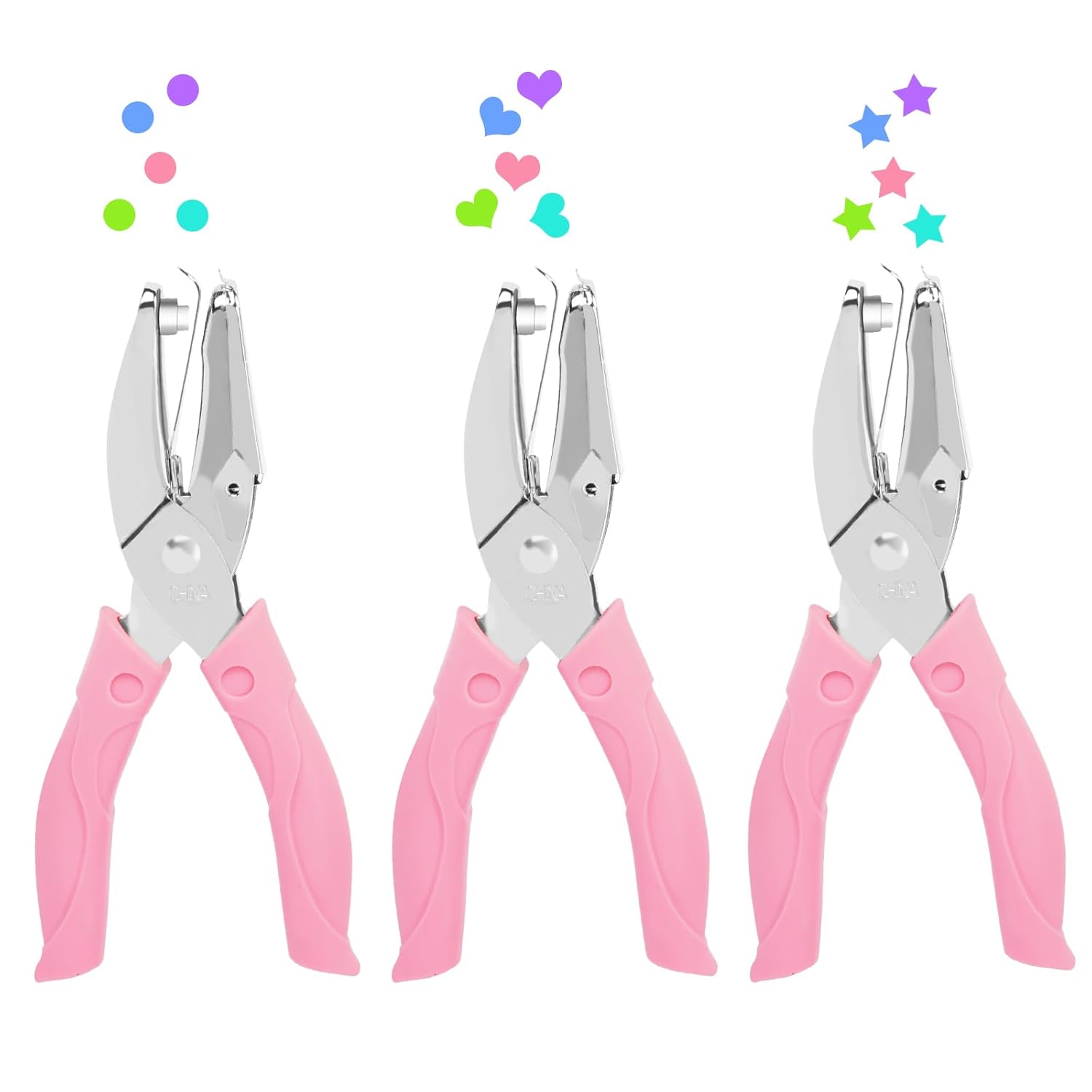 - PACKAGE INCLUDE: The punches for paper crafts has a 6-inch length, the circle punch size is 0.25 Inch (6 mm), star and heart hole punch size is 1 / 4 inches (5.5mm). Humanized handle design, comfortable to hold
