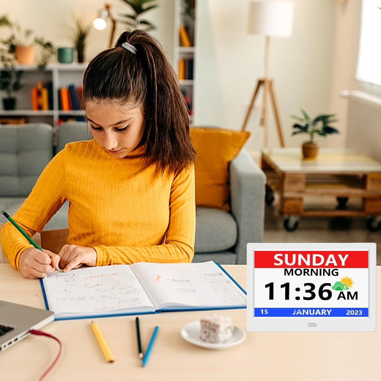 - 【Easy to Read】The digital clock for elderly has a 7-inch display that clearly displays the time, date, day of the week, four time periods of the day [morning, afternoon, evening, night], and displays the ICONS of each time period, non-abbreviated large font helps the elderly easily read the time