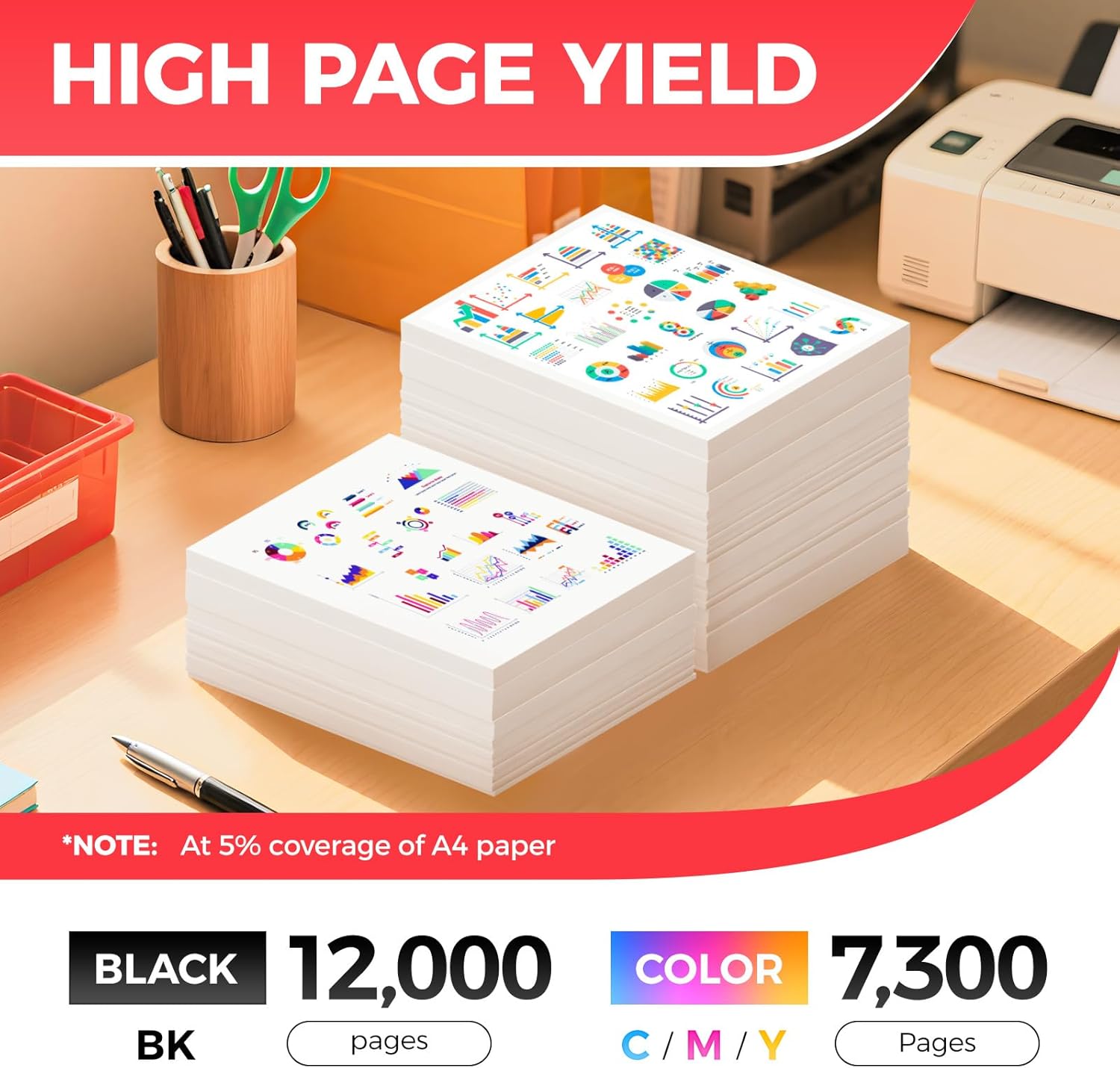 - High-Yield: up to 12,000 pages per CRG-034 Black and 7,300 pages per CRG-034 Color (Total 33,900 pages, 5% coverage),with High Yield Version CRG034 toner Cartridges.