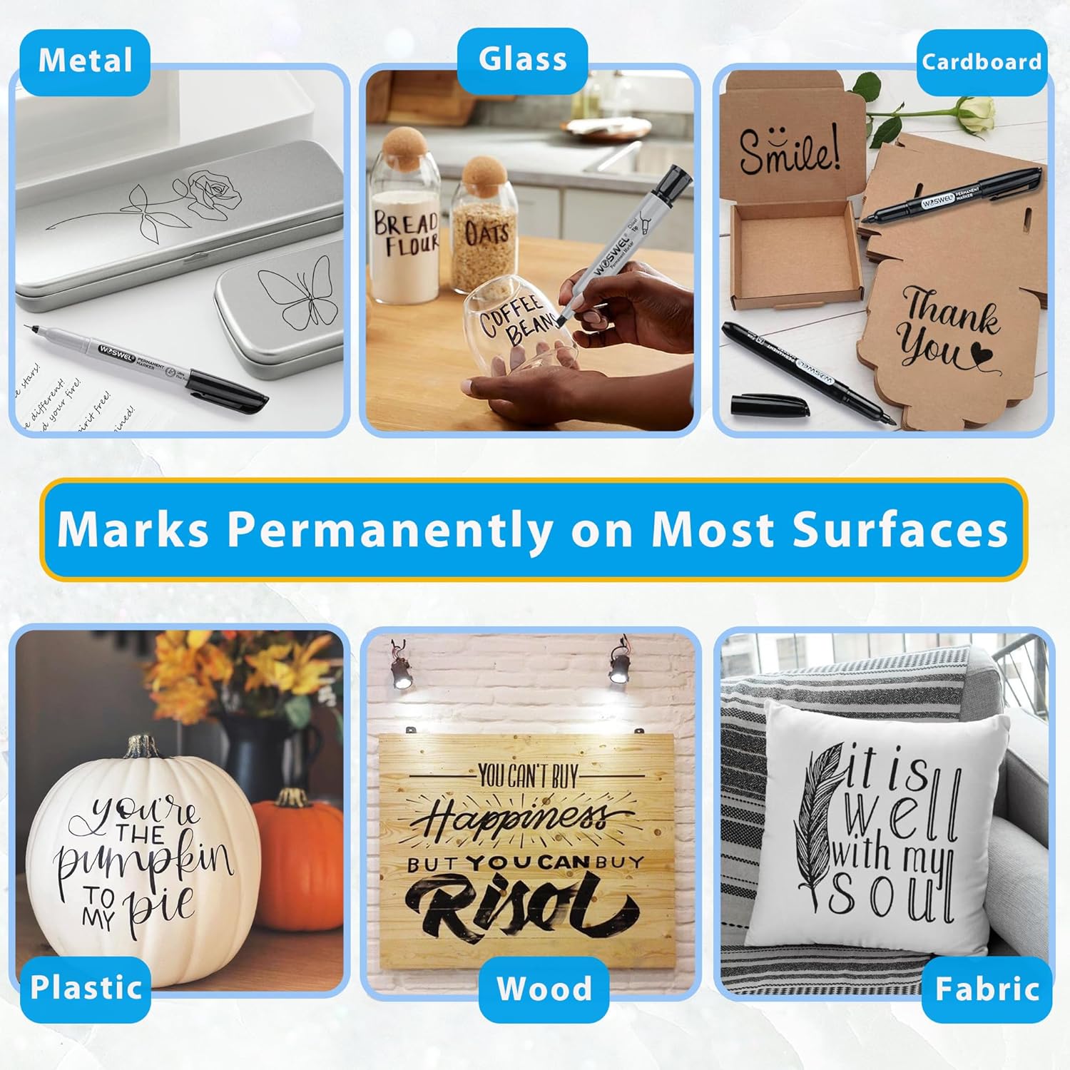 Permanent Markers 36 Variety Pack Bulk,Featuring Ultra-Fine,Chisel Tip,And Fine Tip Marker Set,Writing And Poster Black Markers,Works on Plastic,Wood,Stone,Metal and Glass for Doodling, Marking