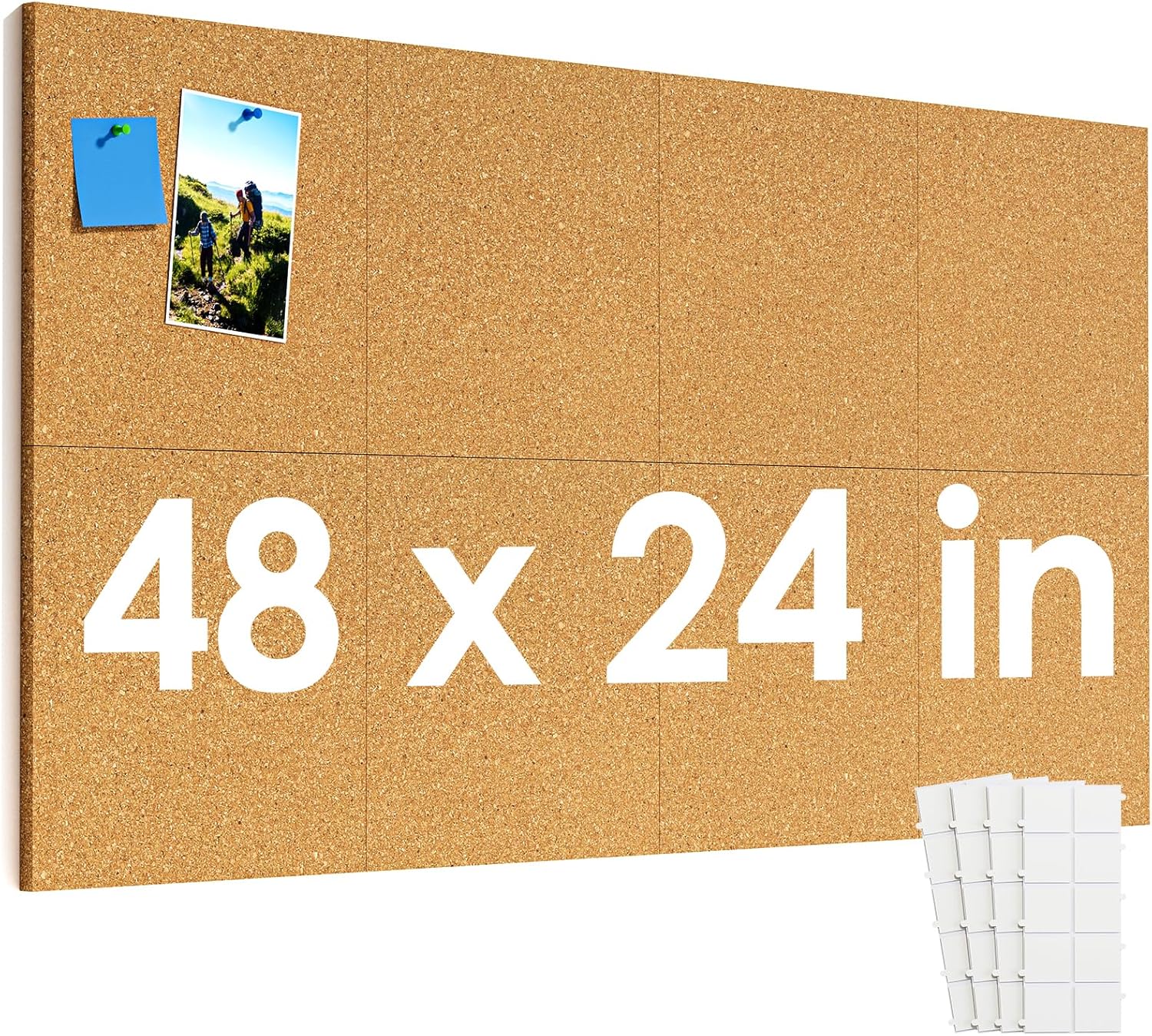 MaxGear Large Cork Board for Wall 48" x 24", 8 Pack Cork Board Tiles with 20 Pushpins & Safe Removable Adhesive Tabs, 12" x 12" Corkboards for Office, School, Home